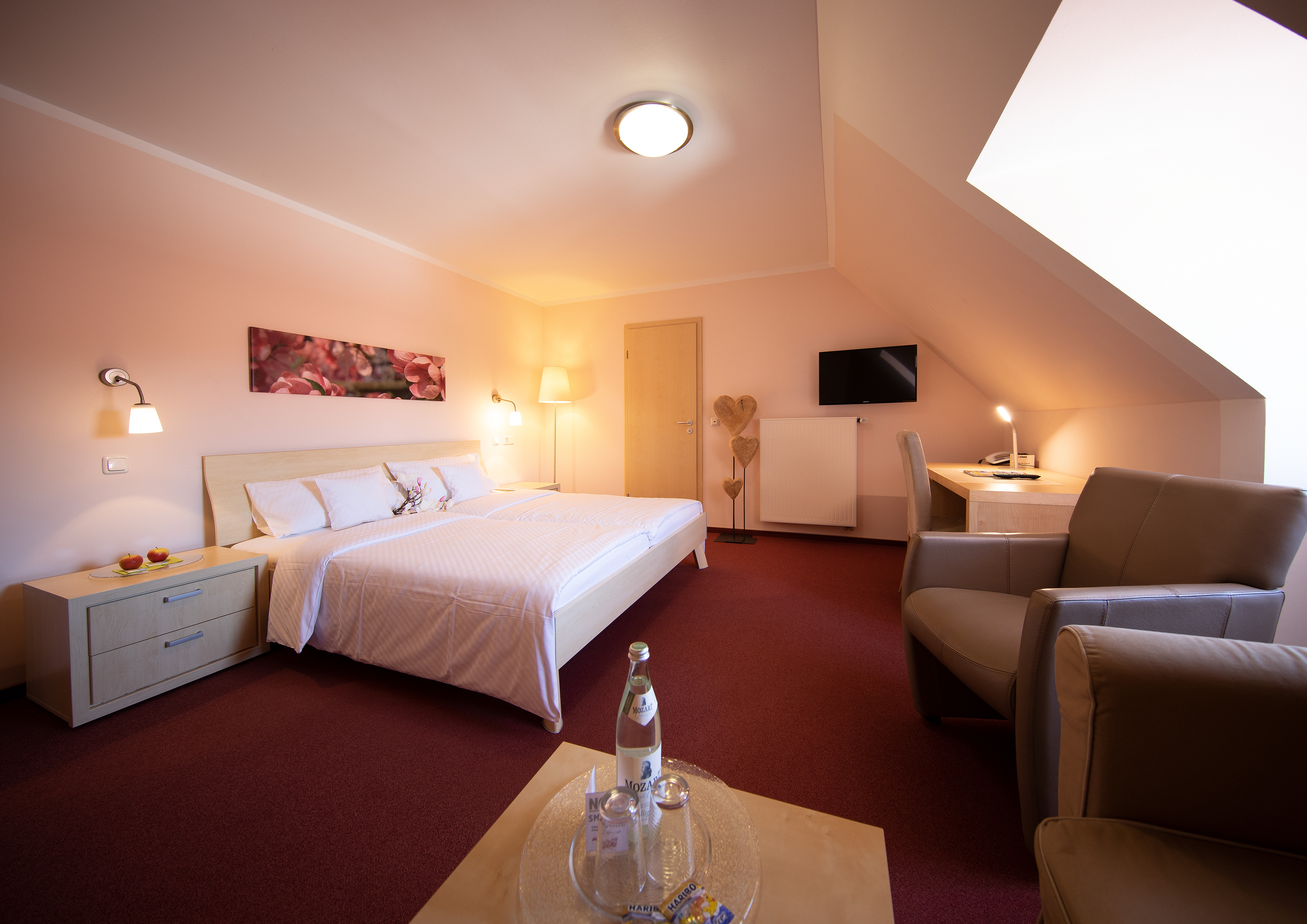 Mit 20 Zimmern und rund 40 Betten ist das Hof Resorium die ideale Unterkunft für Familienfeiern, Freundesgruppen, Vereine oder Teams, die gemeinsam reisen möchten. Jedes Zimmer verfügt über ein eigenes Bad, und durch die Kombination aus Einzel-, Doppel- und Mehrbettzimmern lassen sich individuelle Schlafmöglichkeiten flexibel gestalten.