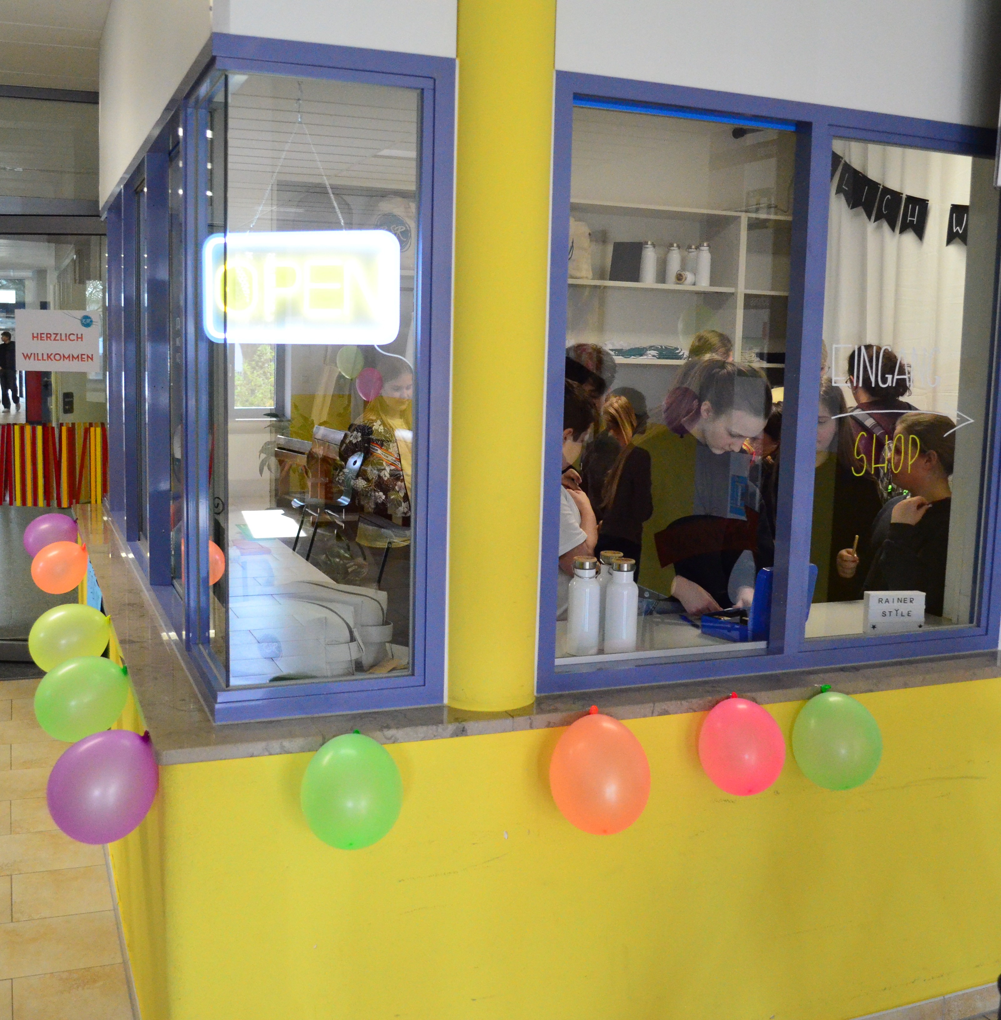 Die Schülerfirma „RainerStyle“ an der Realschule Rain feiert seine Eröffnung. Bild: Verena Obel