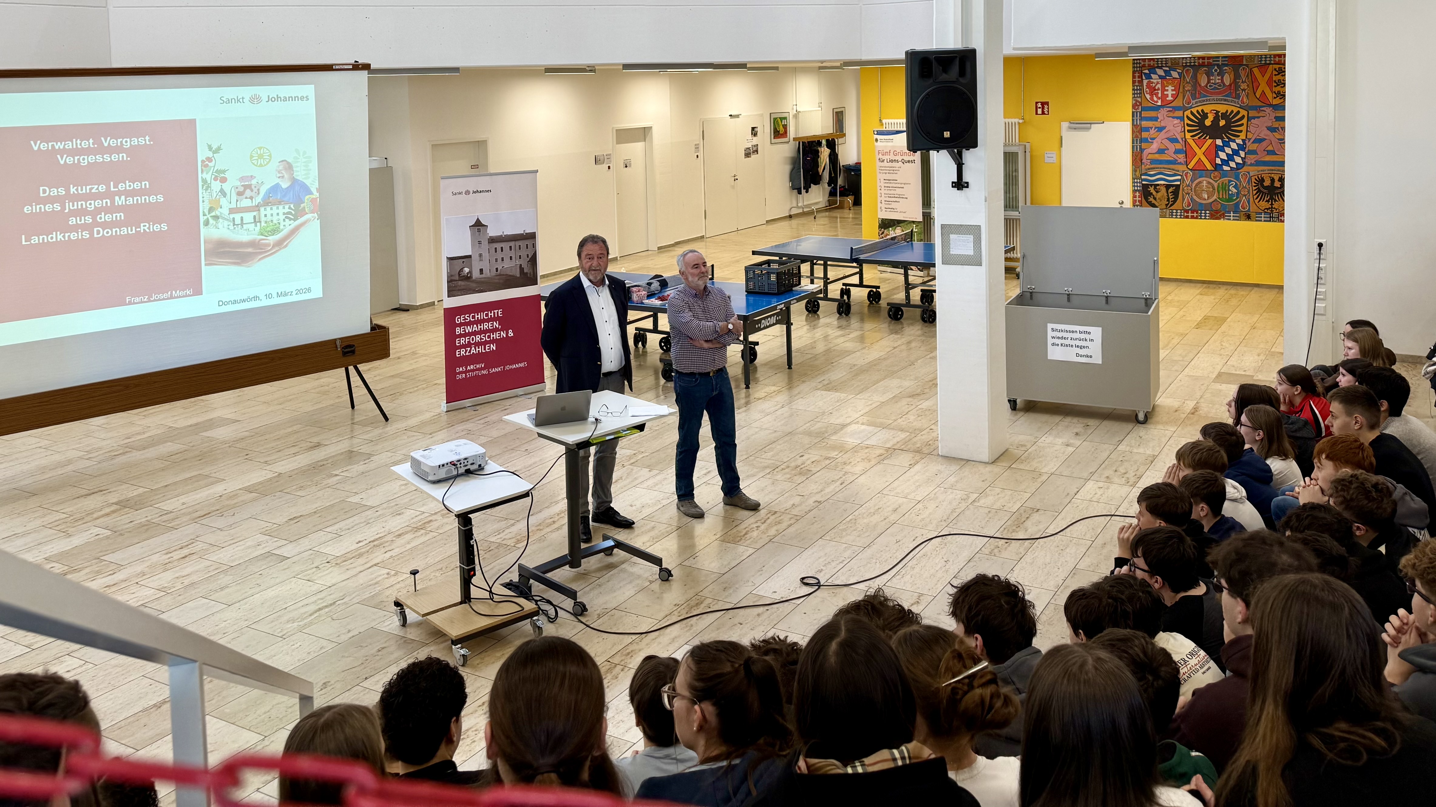 Im Mittelpunkt stand das Thema der NS-Euthanasieaktion, die in der Einrichtung Schweinspoint, damals noch unter dem Schutz der Barmherzigen Brüder, auch über 100 Opfer forderten. Dr. Merkl zeigte auf, wie Ärzte, Pflegekräfte und auch Verwaltungsbeamte in die systematische Ermordung von Menschen mit Behinderung verwickelt waren – ein Aspekt, der die Schülerinnen und Schüler sehr berührte. Beispielhaft legte Dr. Merkl das schreckliche Schicksal eines jungen Mannes aus dem Ries dar.