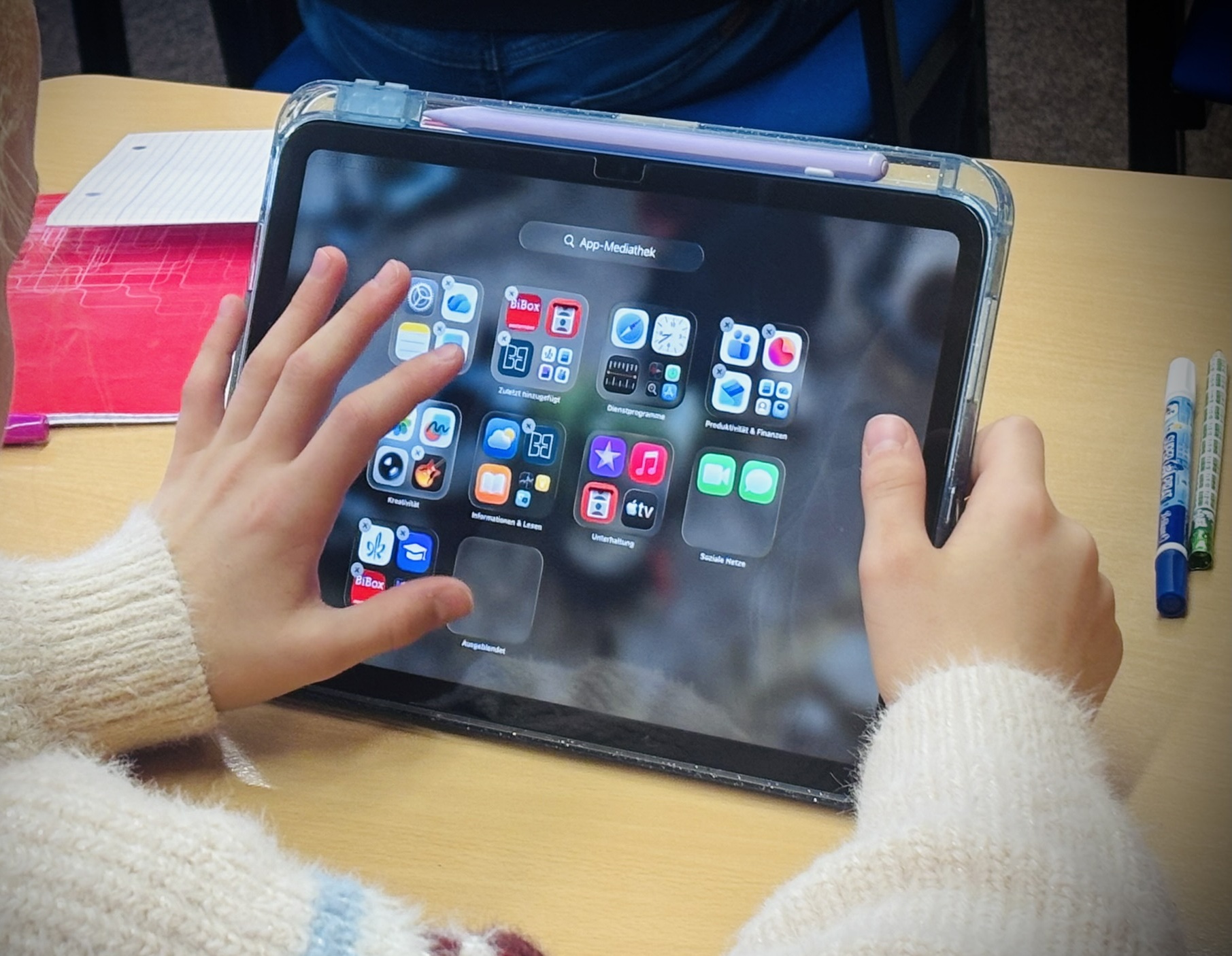 Zum Auftakt führten die angehenden Erzieherinnen einen 90-minütigen Workshop durch. Dabei vermittelten sie grundlegende Kenntnisse zur Bedienung des iPads, erklärten die eingesetzte Hardware sowie schulrelevante Software und beantworteten erste Fragen der Kinder. Auch die Nutzung von Microsoft Teams für den Unterricht wurde altersgerecht eingeführt.