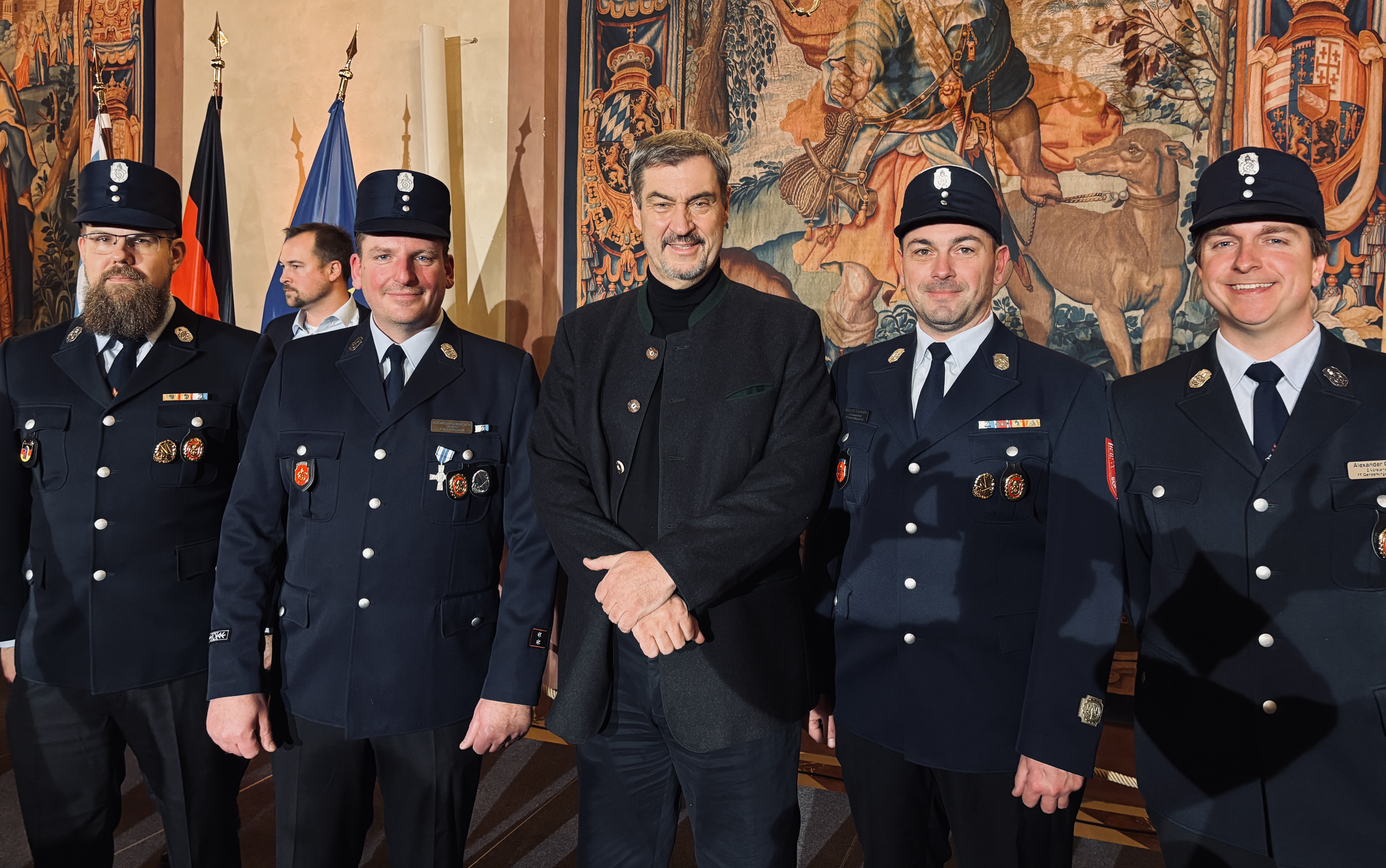 Eine Abordnung der Feuerwehr Genderkingen e.V. hat am Freitag, 5. Dezember, am Staatsempfang in der Residenz München teilgenommen. Insgesamt waren rund 330 Feuerwehren aus Südbayern eingeladen, die in diesem Jahr ihr 150-jähriges Bestehen feiern. Für Genderkingen nahmen 1. Vorstand Schellenberger S., 2. Vorstand Gastl A. sowie die Kommandanten Schweier M. und Wanninger R. am Empfang im festlichen Kaisersaal teil.