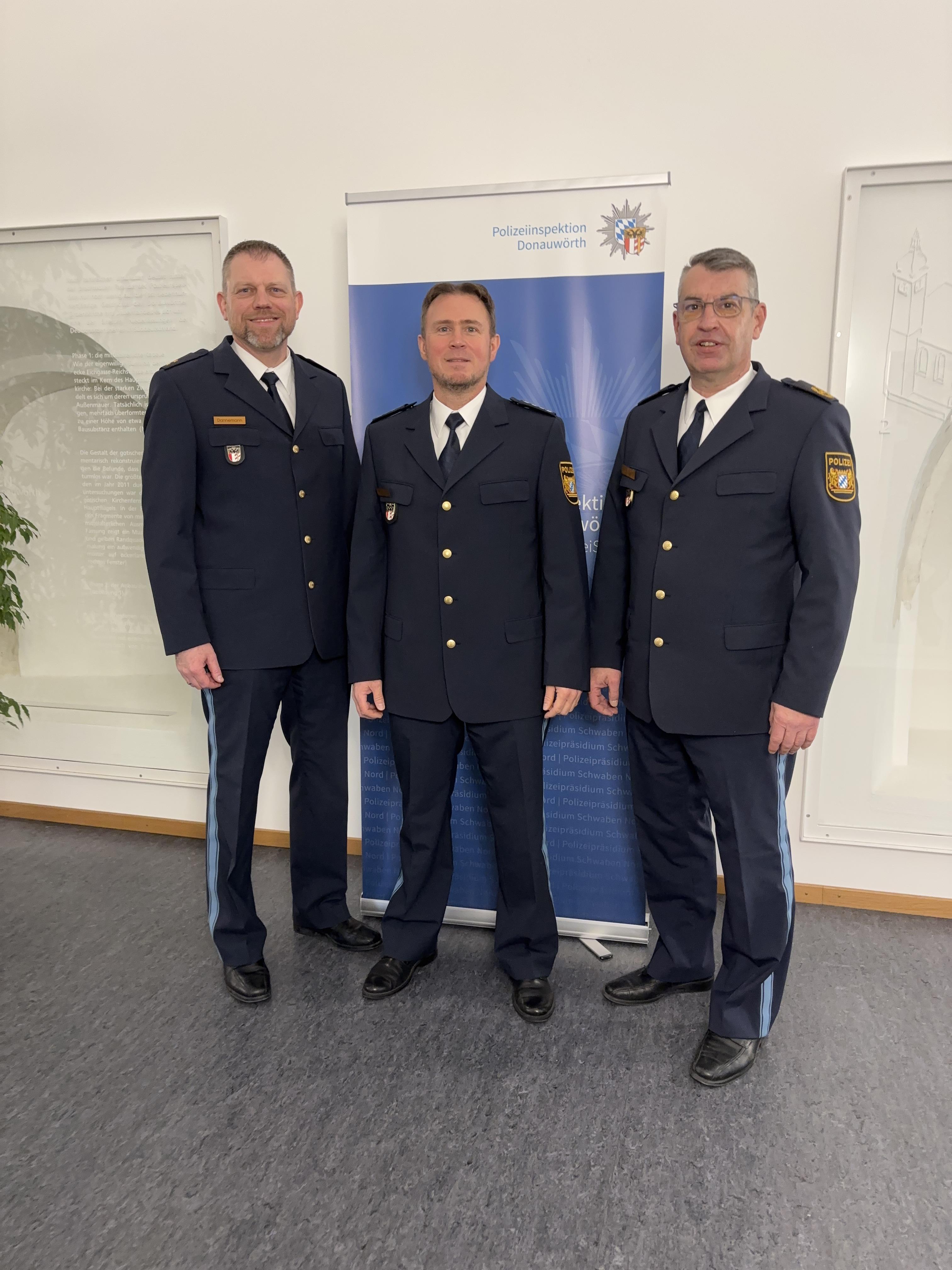 Nach mehr als vier Jahren im Polizeipräsidium Schwaben Nord wechselte Erster Polizeihauptkommissar Christian Lang zur Polizeiinspektion Donauwörth und folgte Polizeihauptkommissarin Daniela Meth nach, die die stellvertretende Leitung für sechs Monate innehatte.