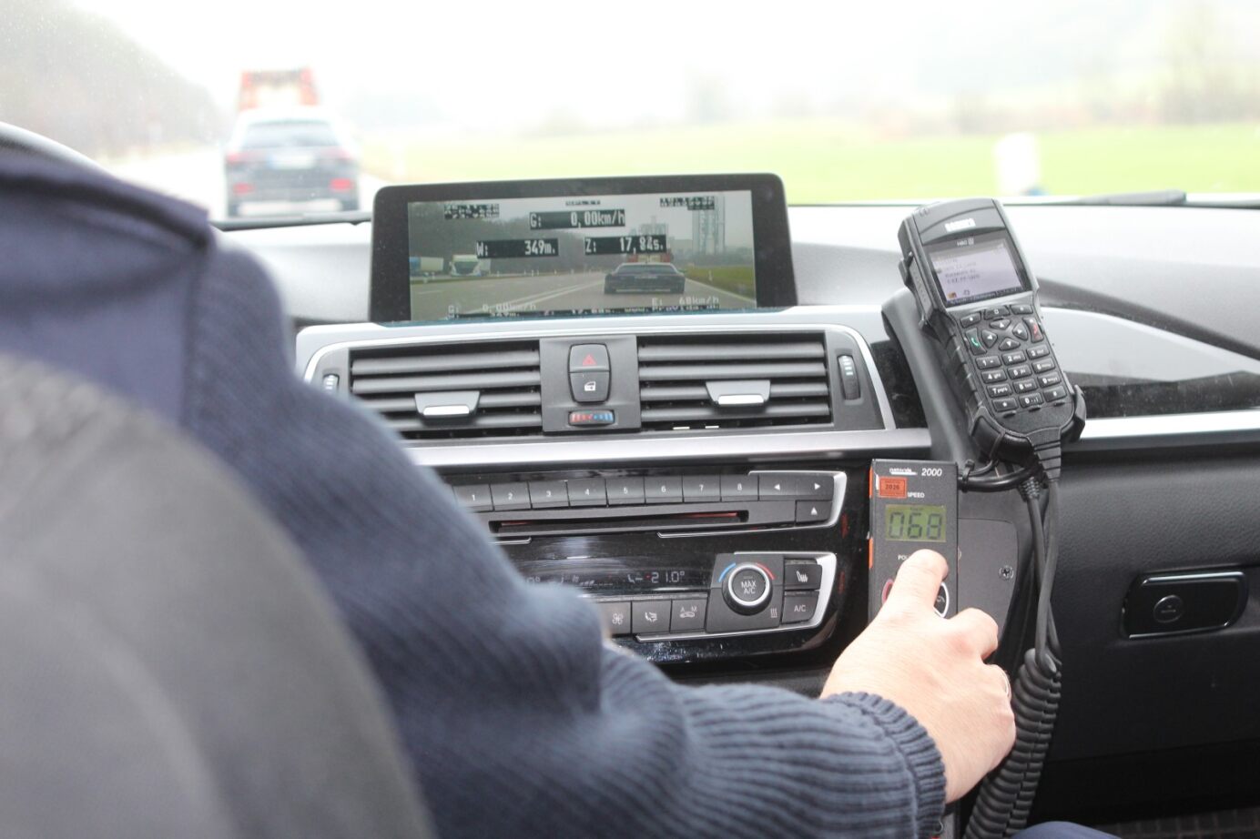 Überhaupt erzählen die Beamten sehr offen von ihrer Arbeit und den Herausforderungen, die der Job mit sich bringt. Es herrsche vor allem eine falsche Sichtweise in der Bevölkerung vor. Oft falle der Begriff Wegelagerei. Auch Radarfalle sei irreführend, betont Oberfrank: „Wir stellen niemandem eine Falle, wir wollen für mehr Sicherheit für alle sorgen.“ Dieselbe Erfahrung hat Polizeioberkommissar Heinle gemacht, der später für Oberfrank ins Auto steigt. In der Verkehrspolizei sei man immer derjenige, der den anderen auf die Finger schaue. „Man muss klarkommen mit der Aufpasserrolle.“