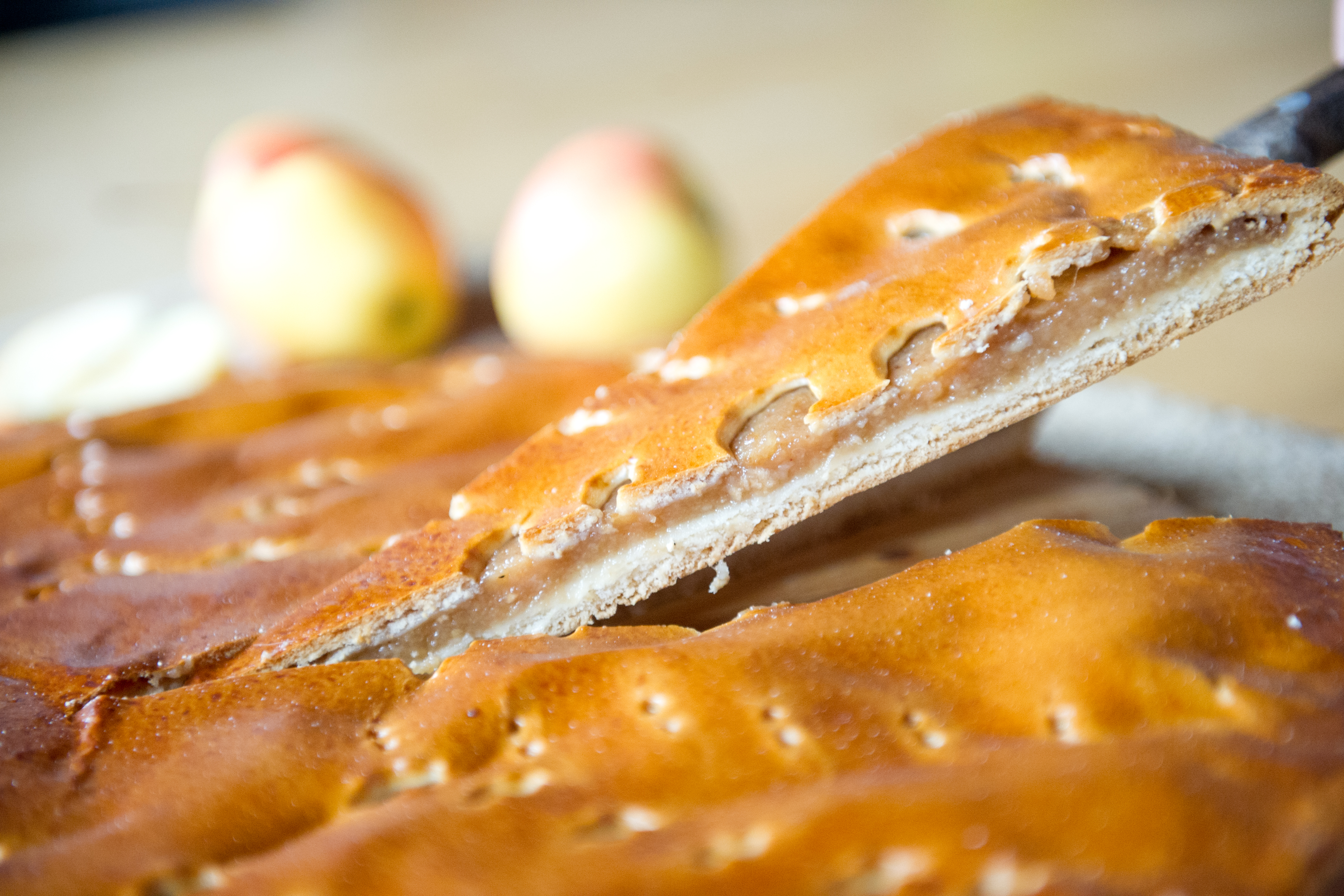 Die Unterschiede sind bis heute sichtbar: Die katholische Version wird klassisch mit mehreren Teigstreifen mit einem Rautenmuster versehen, während die evangelische Variante durch einen geschlossenen Teigdeckel auffällt, der individuell eingeschnitten und verziert wird. Die Bäckerei Weißgerber in Wallerstein stellt meistens die evangelische Variante her – auf Bestellung wird auch die katholische Variante gebacken. Die sei allerdings etwas aufwendiger, verrät Willi Weißgerber. „Ich schneide immer Ähren ein, aber das kann natürlich jeder Bäcker machen, wie er möchte“, sagt der Bäckermeister. „Die Evangelische hat den Vorteil, dass sie geschlossen ist und das Apfelmus dadurch saftiger bleibt.“