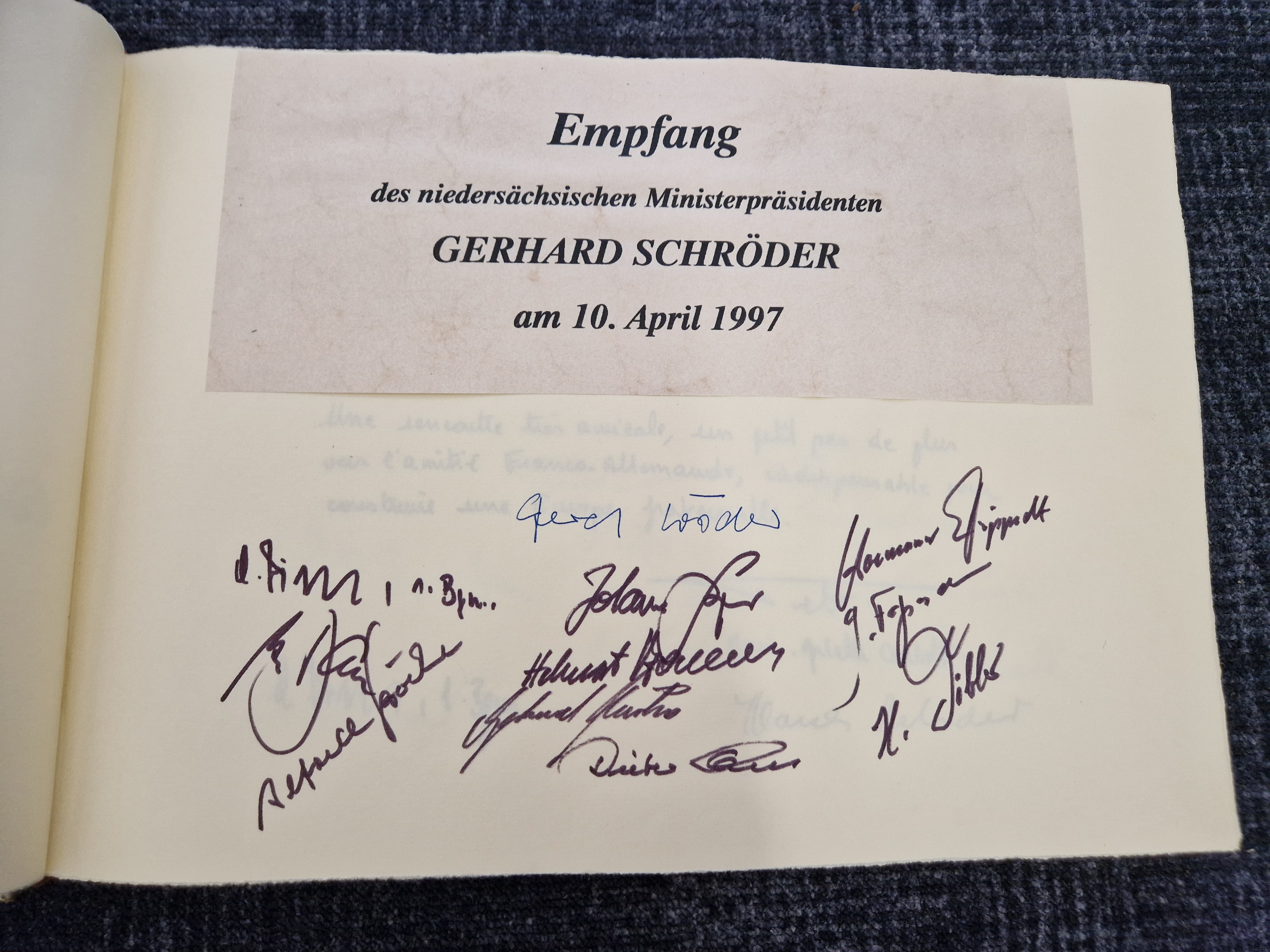 Damals noch als niedersächsischer Ministerpräsident im Amt besuchte Gerhard Schröder im April 1997 die Stadt Harburg und trug sich dabei in das Goldene Buch ein.