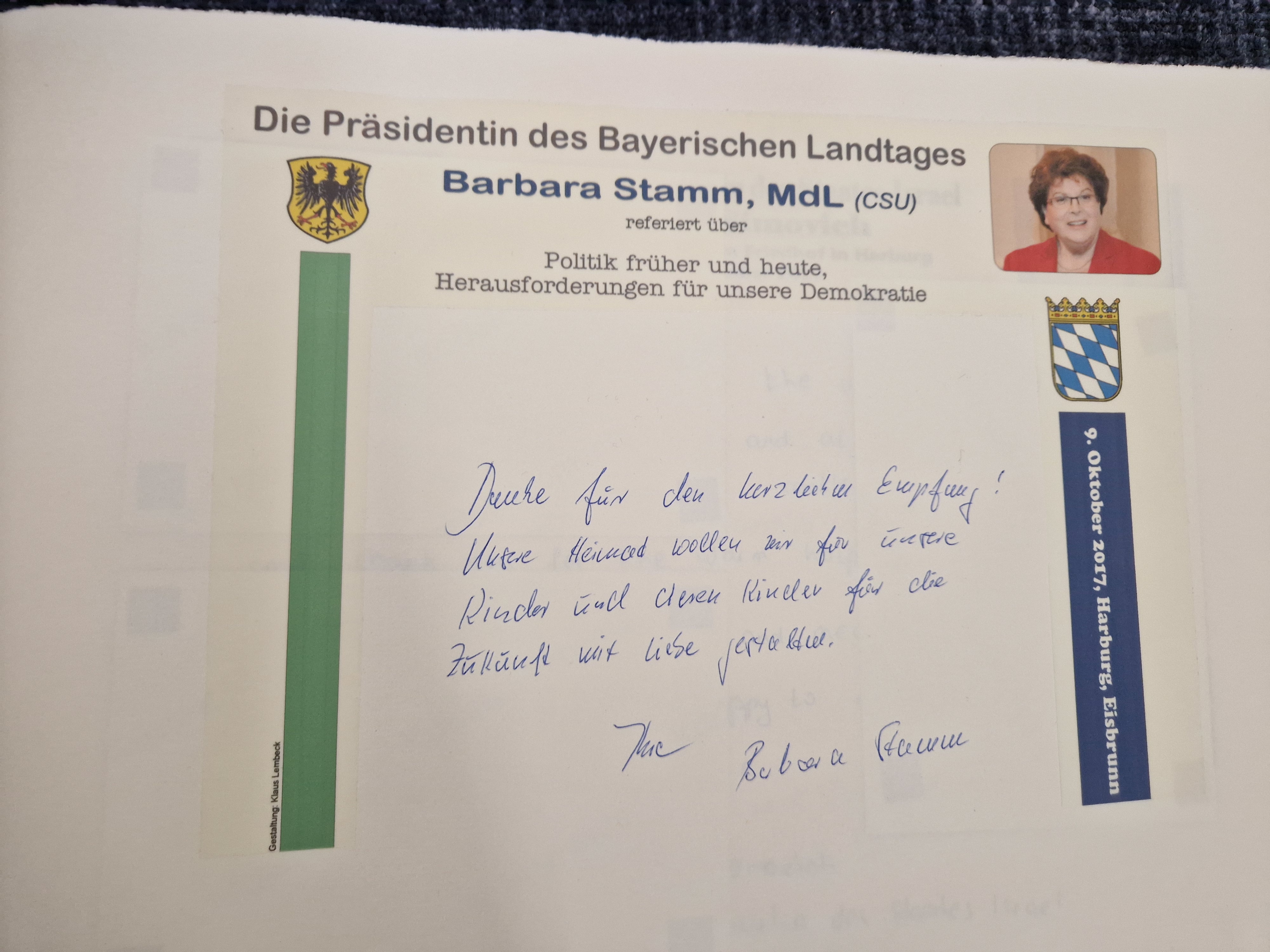 Im vorletzten Jahr als Landtagspräsidentin referierte sie in Harburg über Herausforderungen der Demokratie. Im Oktober 2022 verstarb sie in Würzburg.