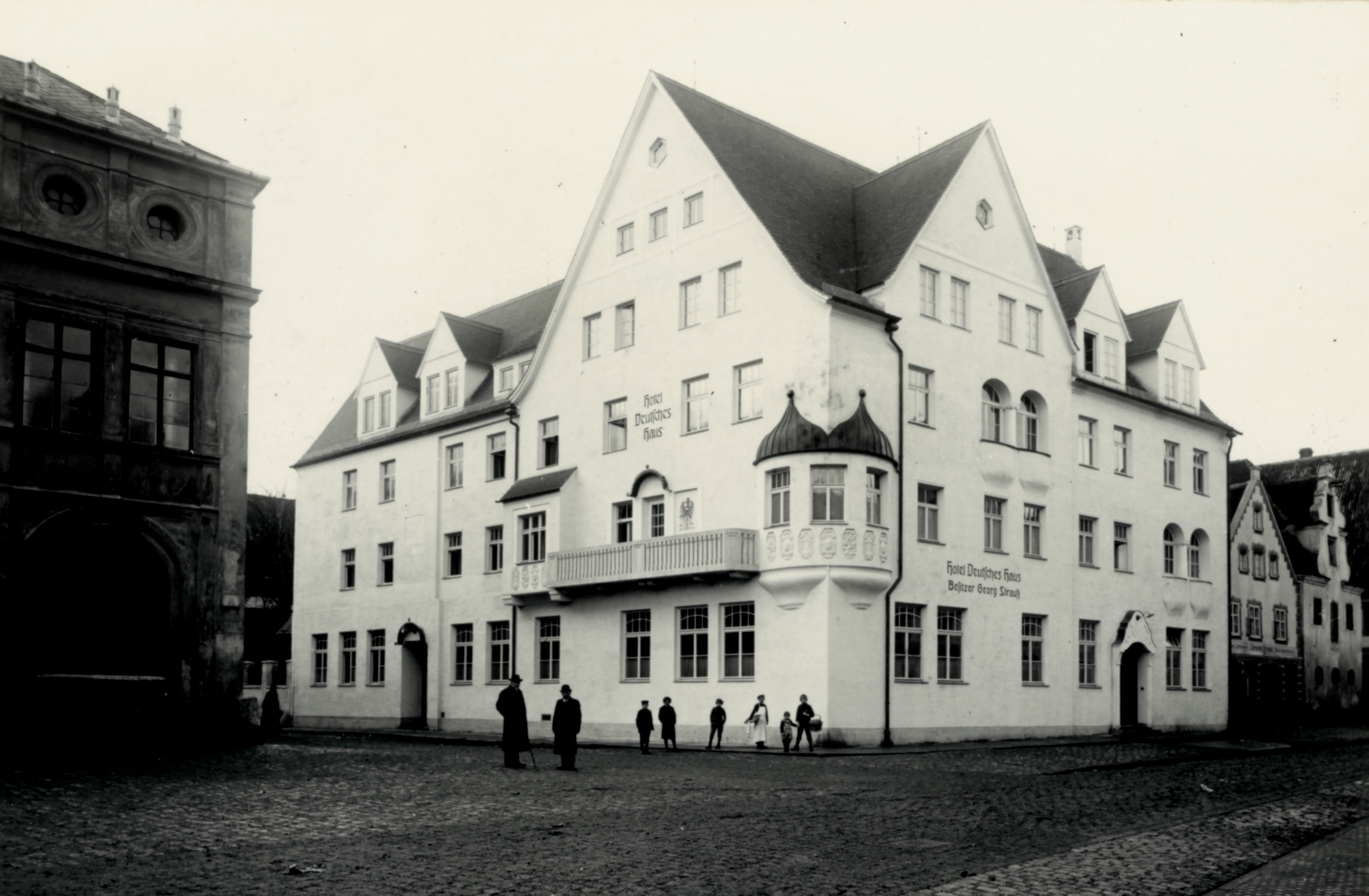 Auf diesem Foto ist das Hotel „Deutsches Haus“ nach dem Wiederaufbau 1911 zu sehen. Bild: Stadtarchiv Nördlingen