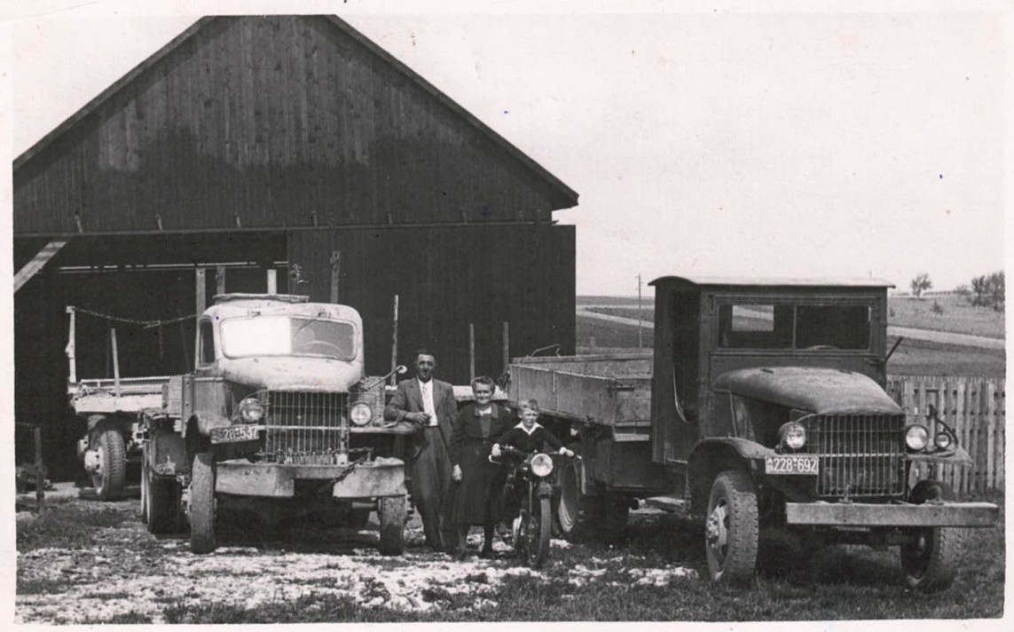 Familie Schwarzer vor der ersten Garage in Wallerstein. Bild: Schwarzer
