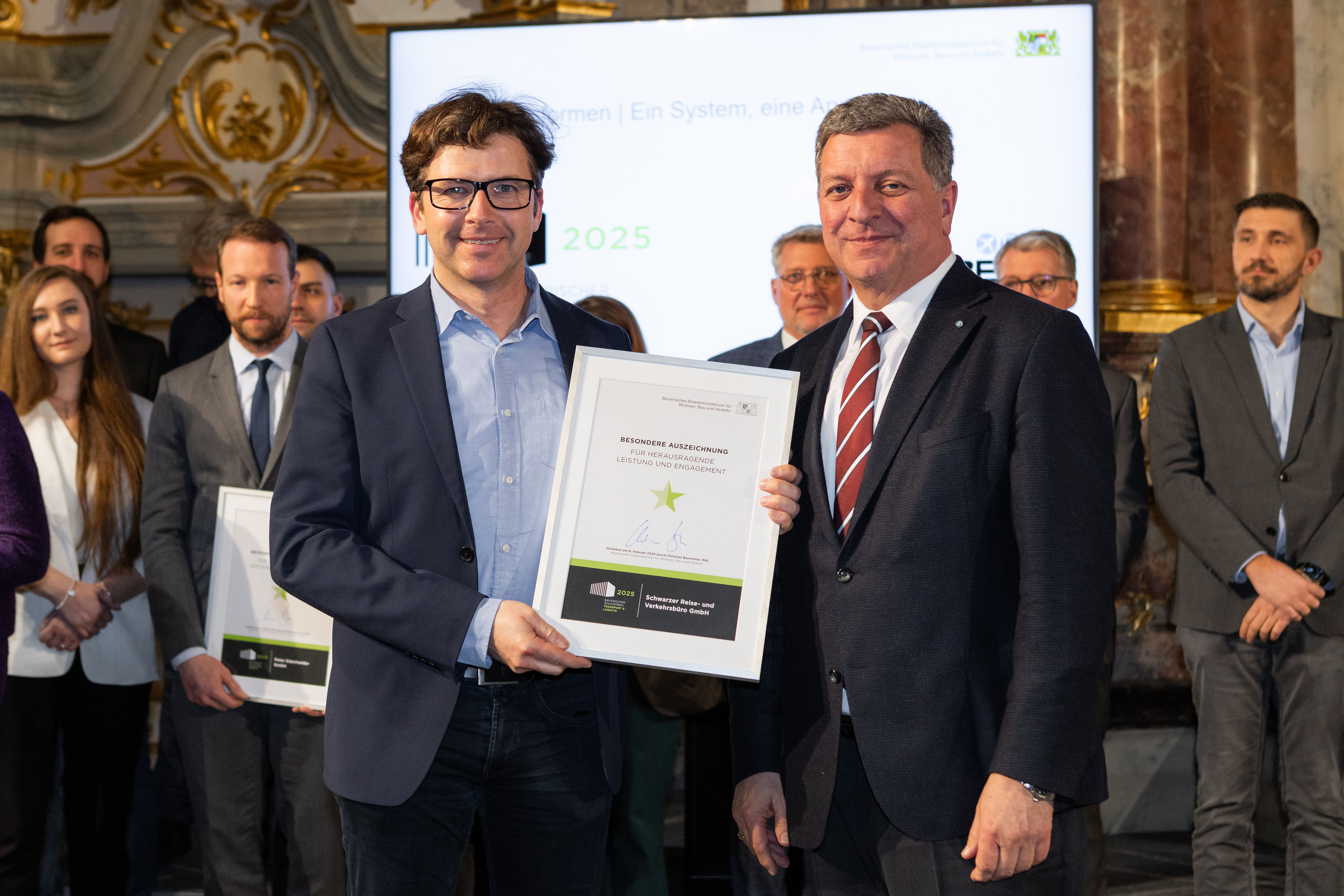 Besonders stolz ist das Unternehmen darauf, dass es mit seinem Buchungssystem WEBmobility im Februar 2025 zu den 20 ausgezeichneten Finalisten gehörte, die den Bayerischen Staatspreis für Transport und Logistik erhielten, der heuer zum ersten Mal verliehen wurde. „Unsere Preisträger zeigen auf beste Art und Weise, wie zukunftsfähig das Transport- und Logistikgewerbe ist“, so Minister Bernreiter bei der Preisverleihung.