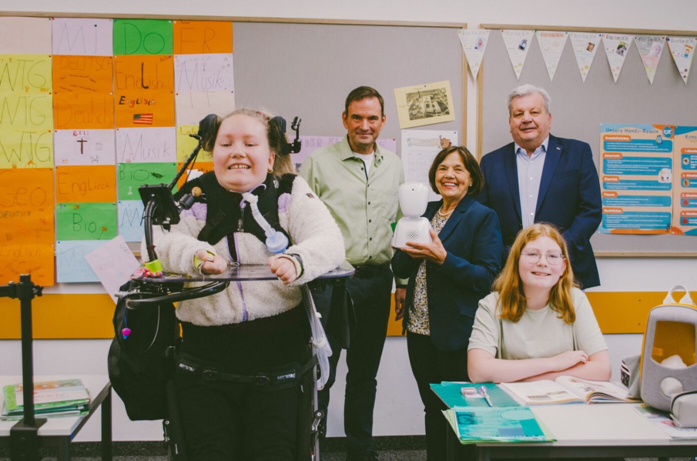 Anfang Mai 2025 übergaben schließlich Rosmarie Schweyer vom Verein Glühwürmchen e.V. und Bernd Bley von den Lions Dillingen den Avatar an Schulleiter Christian Sattich. Dieser betonte dabei, dass das Gerät natürlich vor allem Emily, aber auch allen anderen Schülern im Bedarfsfall eine adäquate Möglichkeit zur Teilnahme am Unterricht bieten könne.
