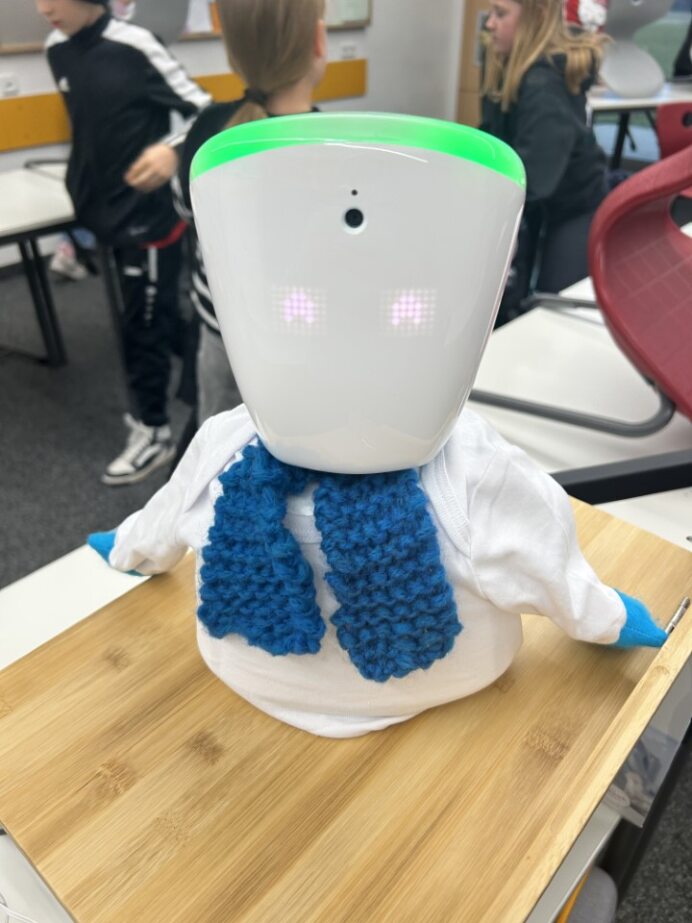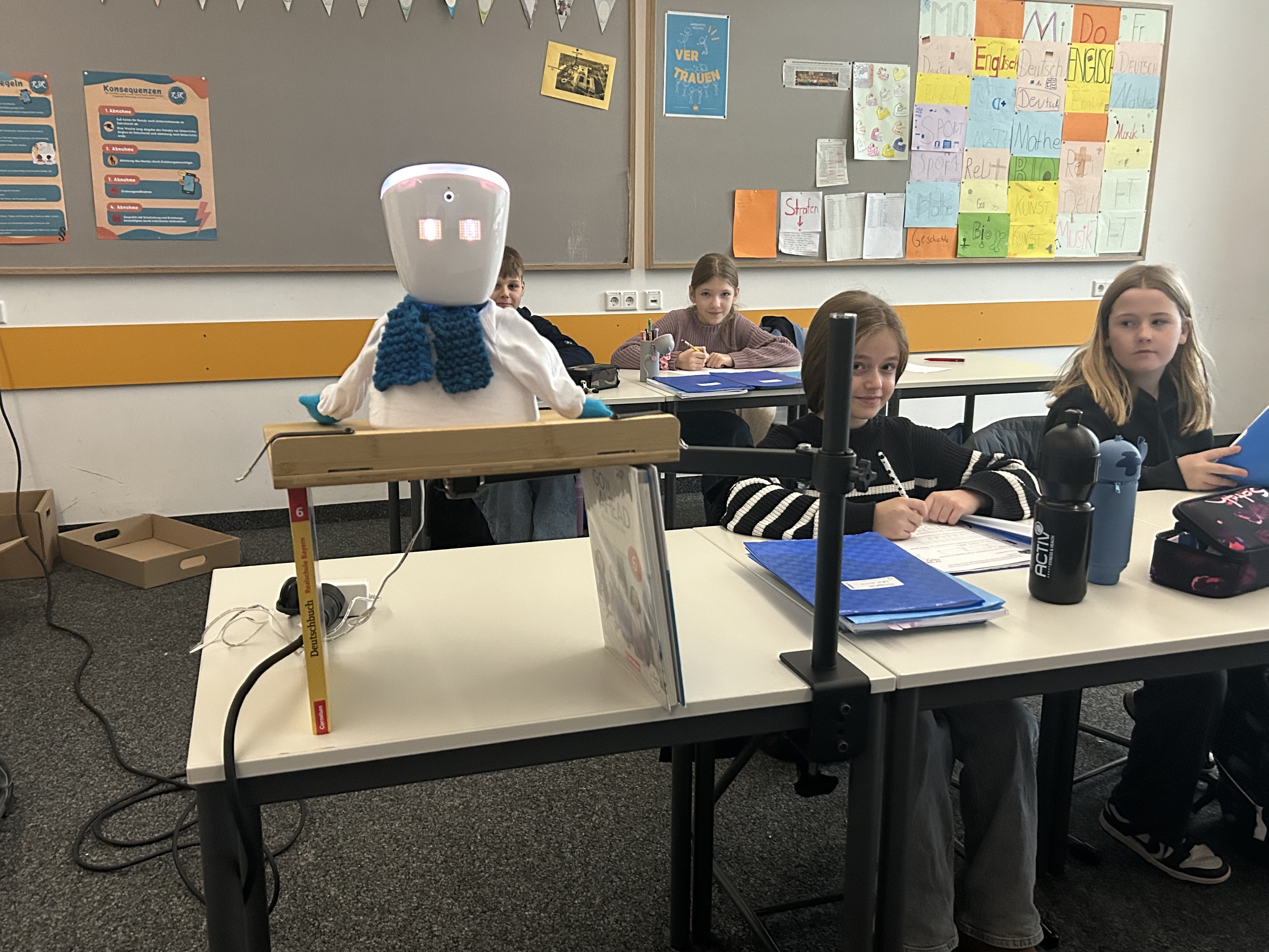 Emily kann von zu Hause aus nicht nur zuhören und zusehen, sondern sich auch melden und so aktiv am Unterrichtsgeschehen teilnehmen: Leuchtet Sam grün, weiß die Klasse, dass Emily etwas beitragen möchte. „Die Schülerinnen und Schüler sind unglaublich aufmerksam“, erzählt Klassenlehrerin Anja Neubauer. „Wenn Sam grün leuchtet, merken es die Kinder oft schneller als ich. Dann zeigen sofort alle darauf.“ Die Technik funktioniere problemlos. Meldet Emily morgens, dass sie heute nicht in die Schule kommen kann, bauen Mitschüler den Avatar wie selbstverständlich im Klassenzimmer auf. Den Namen „Sam“ haben die Schüler*innen gemeinsam mit ihrer Lehrerin ausgewählt. Wichtig war ihnen dabei, dass der Name geschlechtsneutral ist und so zu allen künftigen Nutzerinnen und Nutzern passen würde.