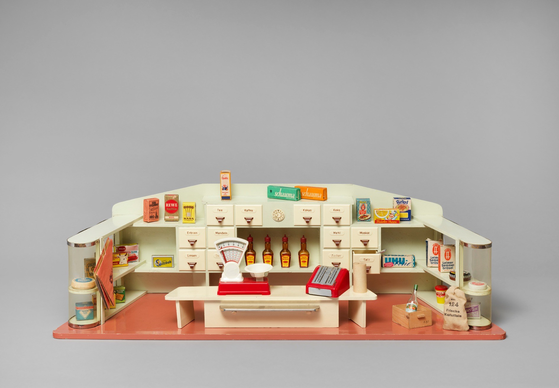 Kaufläden zum Spielen spiegeln seit ihrem Aufkommen im 19. Jahrhundert die Welt der Erwachsenen – oft geschönt – im Kleinen wider. Mit dem Ein- und Verkaufserlebnis war das Einüben von Fähigkeiten und Rollenbildern verknüpft. Für Mädchen wie Jungen galten Kaufläden als anregende Lehrmittel, um sich Warenkenntnisse, Maße und Gewichte aber auch nützliche Praktiken wie Handeln, Bezahlen und Haushalten anzueignen. Weitere Themen wie Warensortimente und Werbung, Kolonialismus oder Spielzeug-Kaufläden als Geschenke zu Weihnachten werden in der Ausstellung angesprochen.