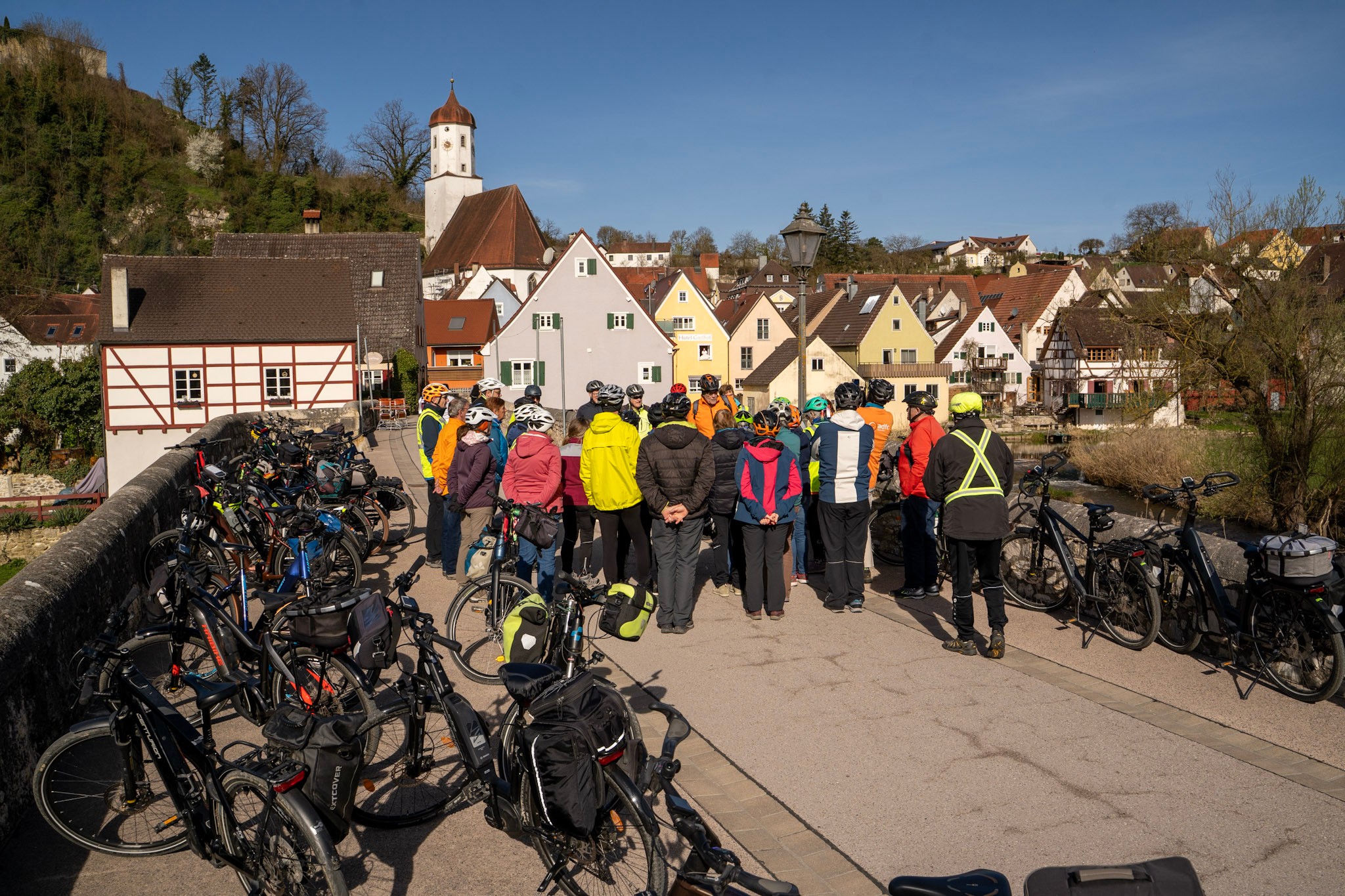 Die Jakobus Ries-Radrunde ist über 80 km lang und verbindet mehrere Jakobuswege in der Region. Am Ostermontag eröffneten Pfarrer Nitz und der ADFC Donau-Ries diesen Abschnitt der Jakobus-Wege mit einer Fahrrad-Pilgertour.