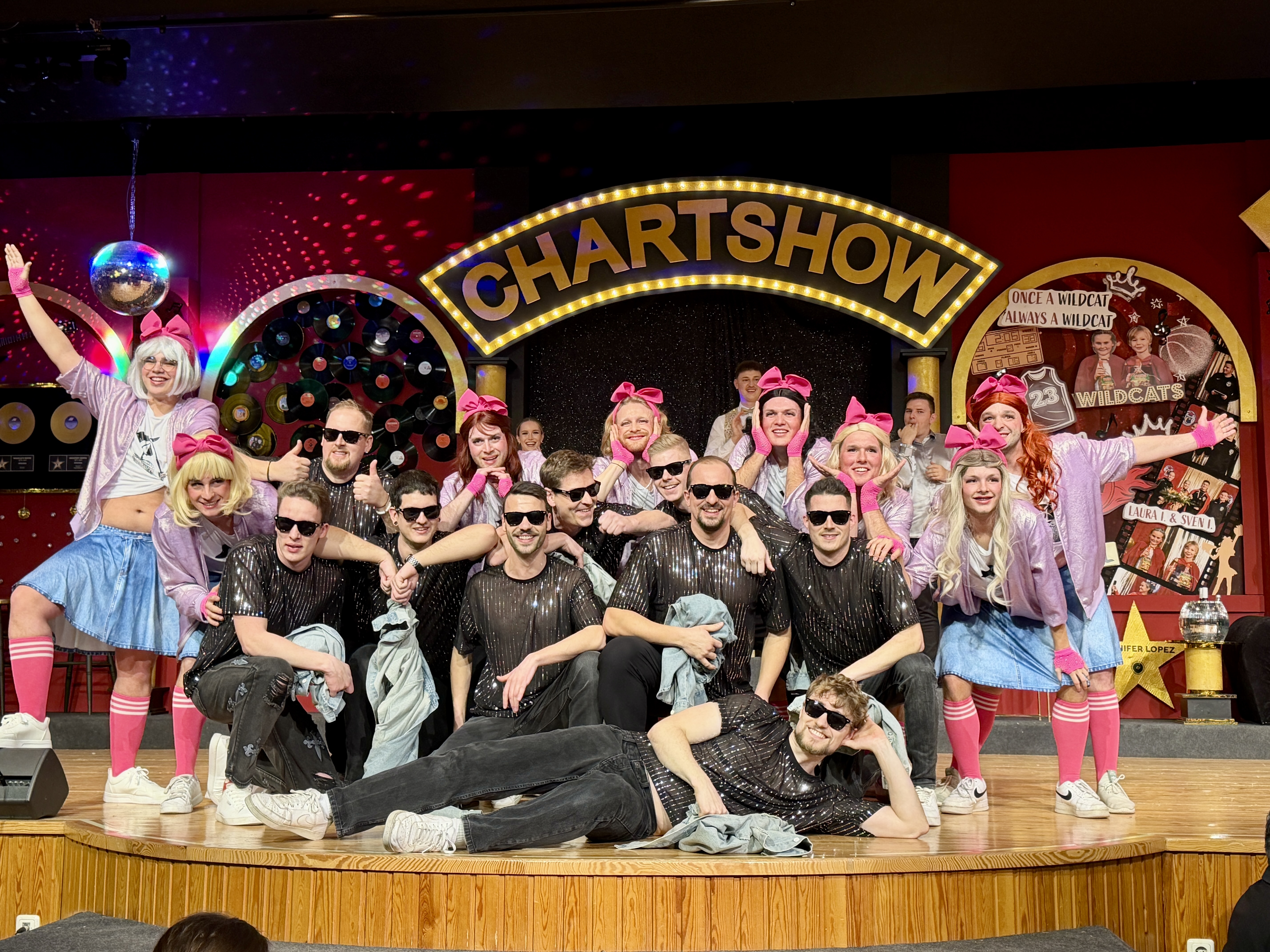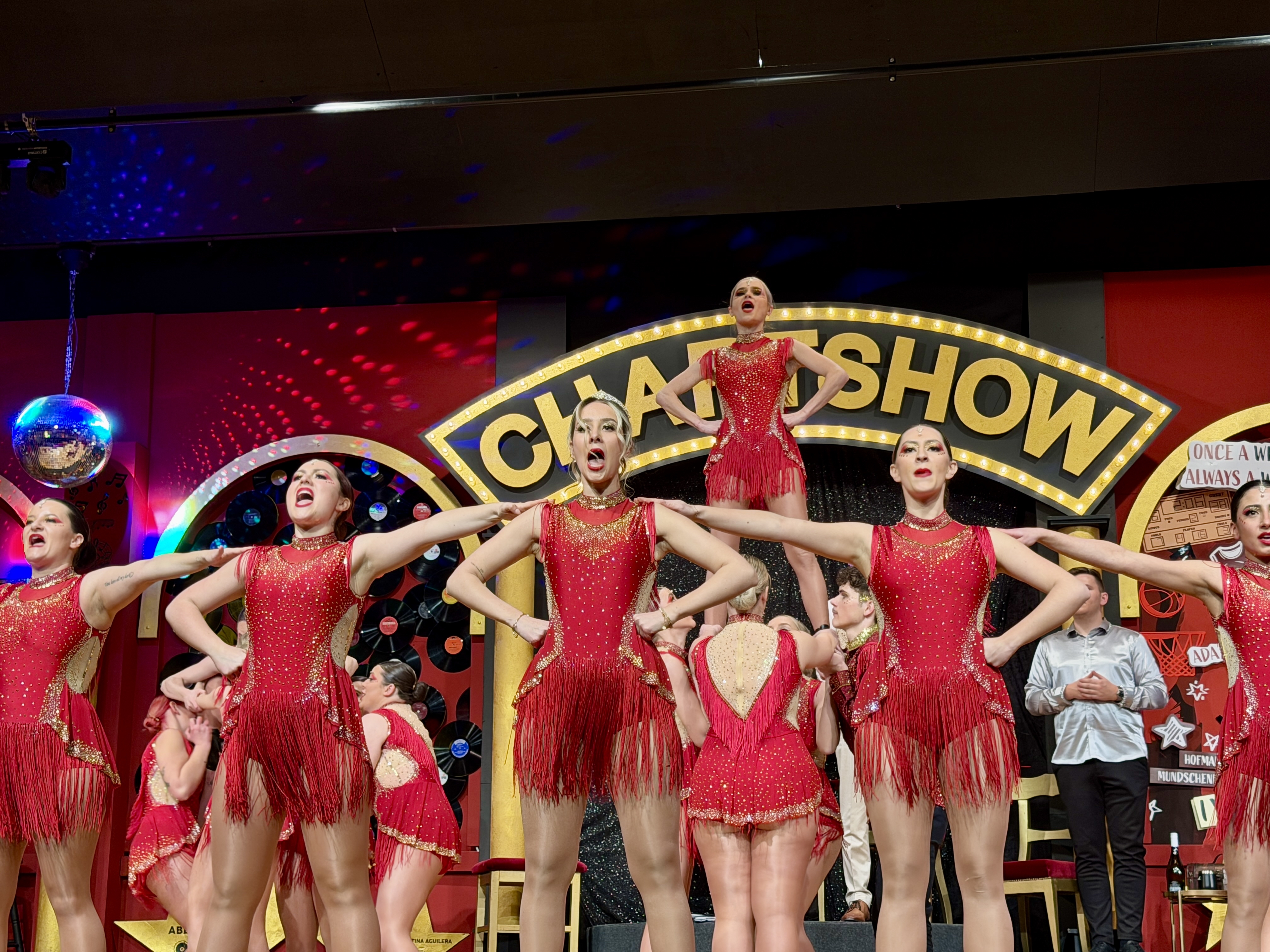 Nach der Pause eröffnete das Kolping-Theater den zweiten Teil des Abends mit einer Szene an der Supermarktkasse: Zahllose Einkaufswagen stauten sich an der Kasse, doch nichts ging voran. Die Laune schwankte, die Stimmen wurden schriller – eine urkomische Situation, die das Publikum begeisterte. Die Teeniegarde entführte die Gäste anschließend musikalisch in die 90er-Jahre, bevor in der Bütt von Andrea und Uli die Bürgermeisterwahl thematisiert wurde. Monheim gleiche aktuell einem Panini-Sammelalbum, stellten sie fest, und nahmen dabei alle drei Kandidatinnen und Kandidaten humorvoll aufs Korn. Für stehende Ovationen sorgte schließlich das Männerballett der Gailachia, die „Jungelfer“. In einem mitreißenden Dancebattle – Mädchen gegen Jungs – zu verschiedensten Hits forderte das Publikum lautstark eine Zugabe. Das große Finale gehörte dem Showtanz der Prinzengarde, die mit einer Reise in die 20er-Jahre erneut unter Beweis stellte, warum sie in der vergangenen Saison unter anderem die Showtanznacht gewonnen hatte. Nach dem offiziellen Ende war noch lange nicht Schluss: Bis 03:00 Uhr morgens wurde weitergefeiert – ein würdiger Ausklang für eine rundum gelungene Prunksitzung.