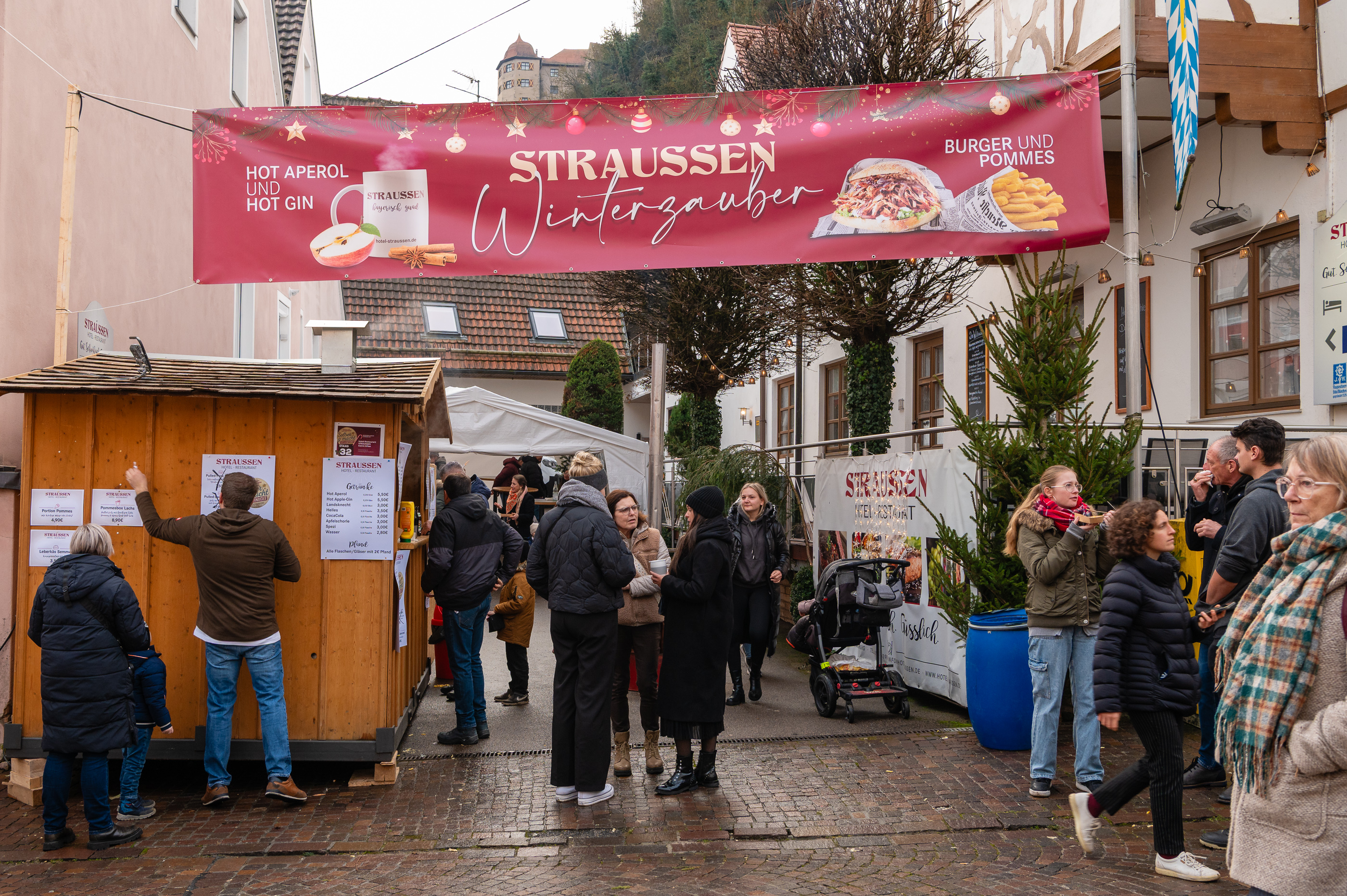 Rund um den Mangoldfelsen laden Markstände zu Glühwein, Punsch und Süßigkeiten ein.