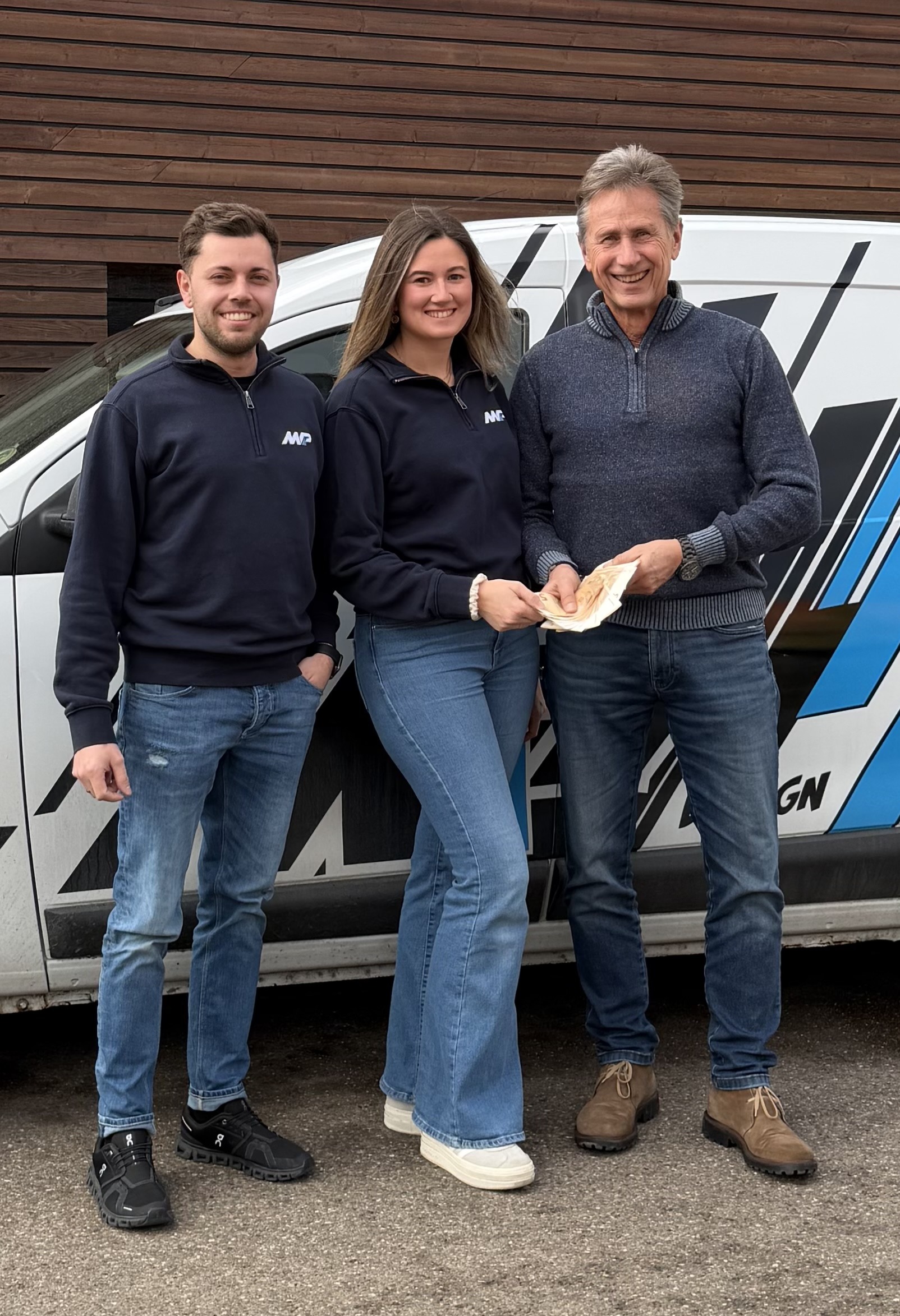 Der Geschäftsinhaber von MP Design aus Wemding, Marco Pattermann-Steib sowie Melissa Steib, Ehefrau des Geschäftsinhabers und Mitarbeiterin der Firma, sammelten im Dezember 2025 an ihrem Stand beim Weihnachtsmarkt in Wemding eine Spendensumme in Höhe von 1000 Euro. Ein herzliches Dankeschön geht in diesem Zusammenhang an die Faschingsgruppe Doosköpf, die beim Verkauf am Weihnachtsstand kräftig unterstützte. Ziel der Aktion war, in der Region lebende schwer erkrankte Kinder und deren Familien zu unterstützen.