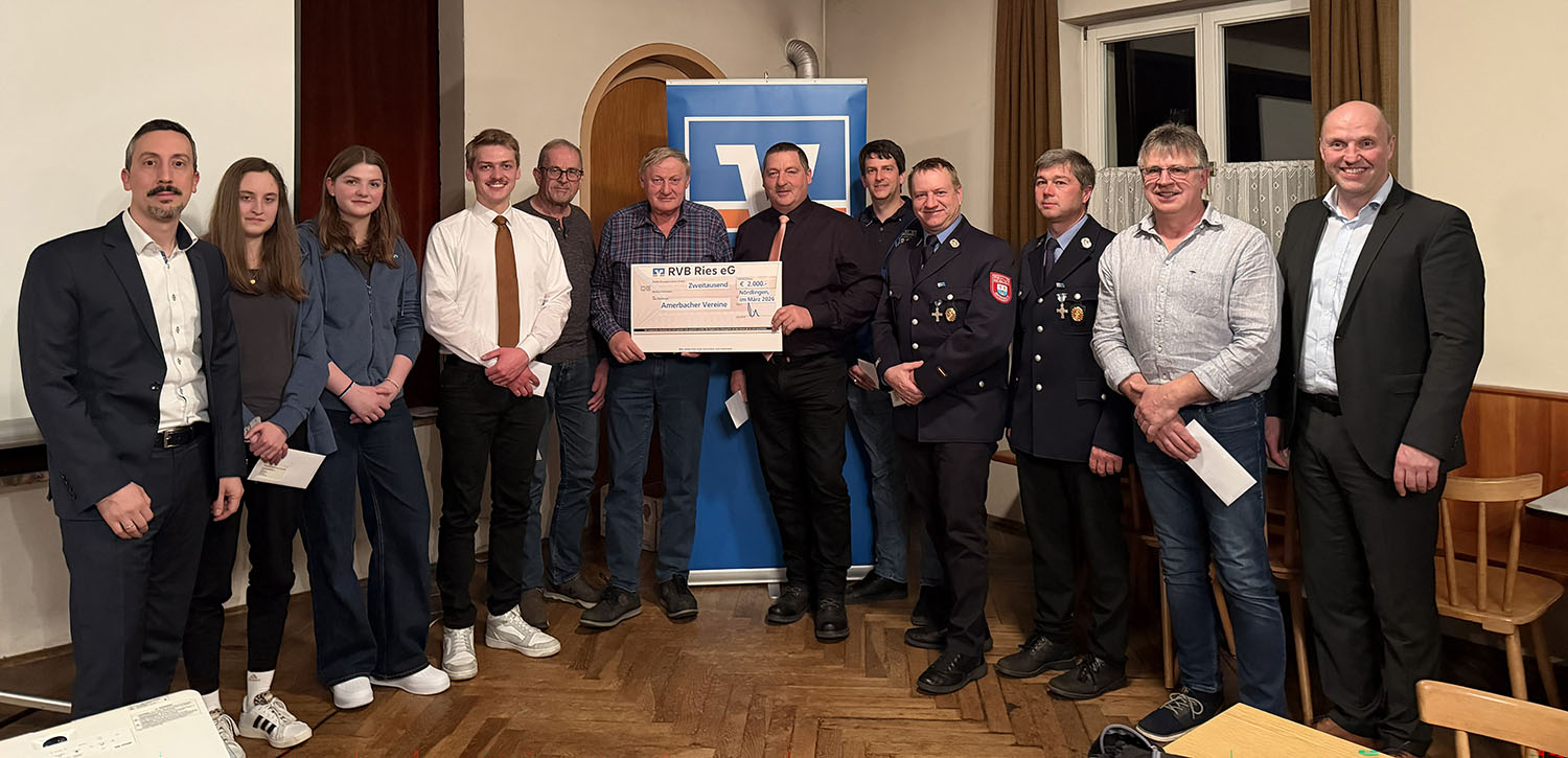 Ein besonderer Höhepunkt des Abends war die Übergabe von Spenden an die Amerbacher Vereine. Insgesamt acht örtliche Organisationen erhielten jeweils 250 Euro, sodass 2.000 Euro direkt in das gesellschaftliche Leben vor Ort zurückfließen. Mit dieser Geste unterstreicht die Bank ihre enge Verbundenheit mit Amerbach und ihr klares Bekenntnis zum ehrenamtlichen Engagement.
