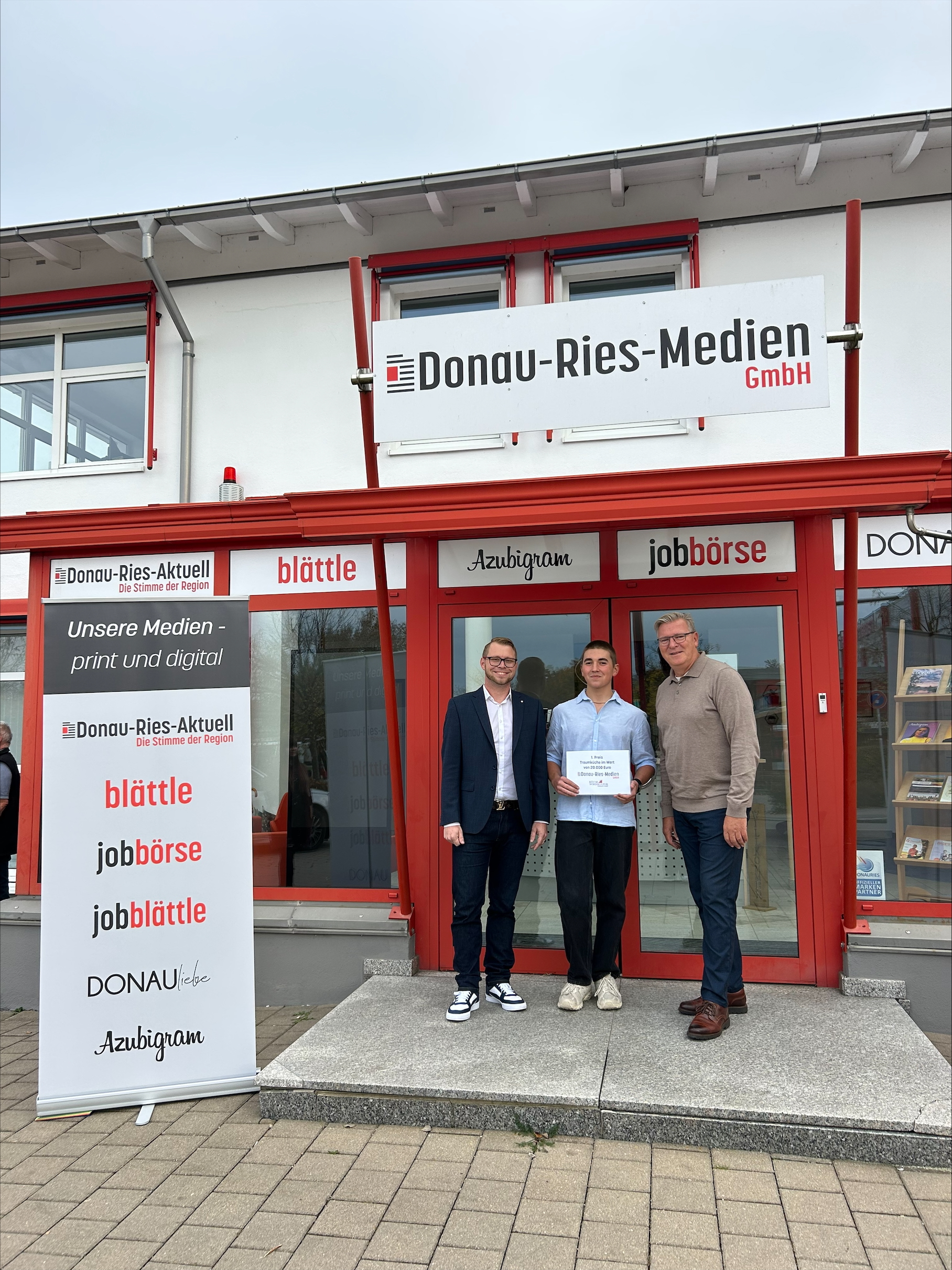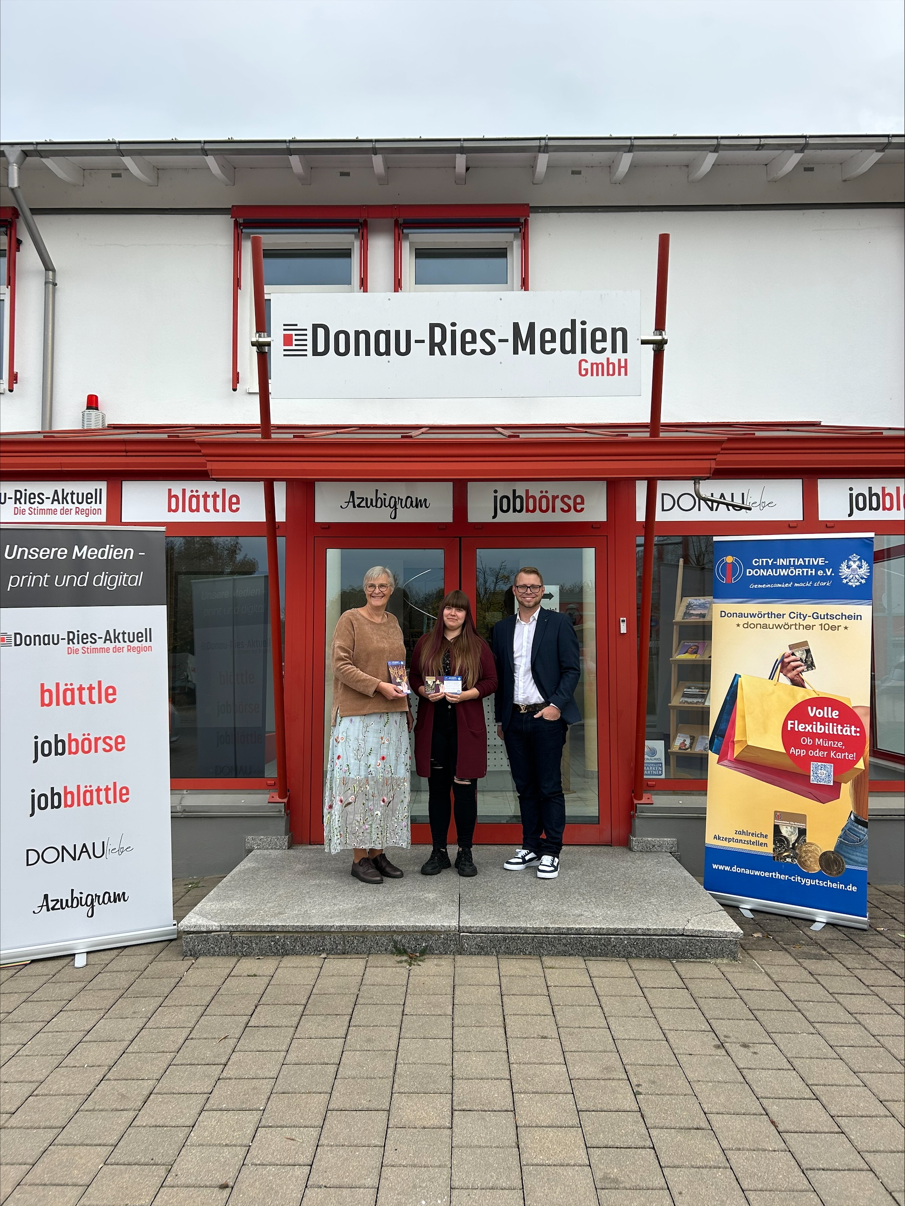 Am 20. Oktober 2025 fand bei uns, der Donau-Ries-Medien GmbH in Donauwörth, die feierliche Übergabe der Preise zur Donau-Ries-Aktuell Buchstaben-Schnitzeljagd statt. Die Aktion war Teil der 20. DONAURIES-Ausstellung in Nördlingen (01. bis 05. Oktober 2025) und erfreute sich großer Beliebtheit: Insgesamt nahmen 1.155 Besucherinnen und Besucher an der Verlosung teil.