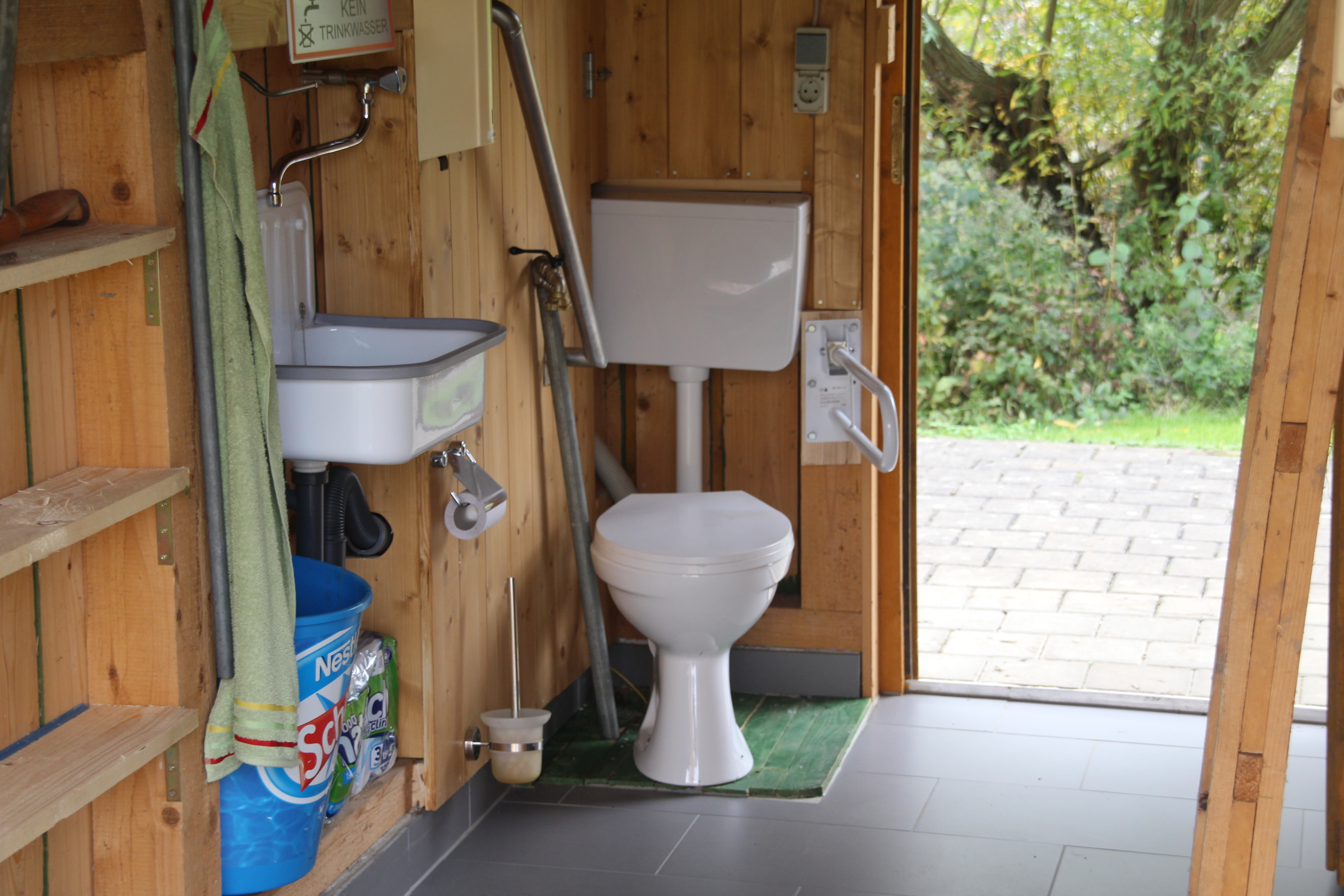 Der Bau der Toilette wurde in Eigenregie über die Bühne gebracht und dank der Hilfe einiger Vereinsmitglieder erfolgreich abgeschlossen. Dazu kam die Hilfe mehrerer Unternehmen, die Material spendeten. So steuerte Frank Energie- und Gebäudetechnik aus Nördlingen die nötigen Installationen bei, von Fliesen-Puffer aus Löpsingen bekam man die Fliesen. Das Reha-Team Feix sorgte für die entsprechende Ausrüstung an Stützhaltebügeln, um die Toilette barrierefrei zu gestalten.