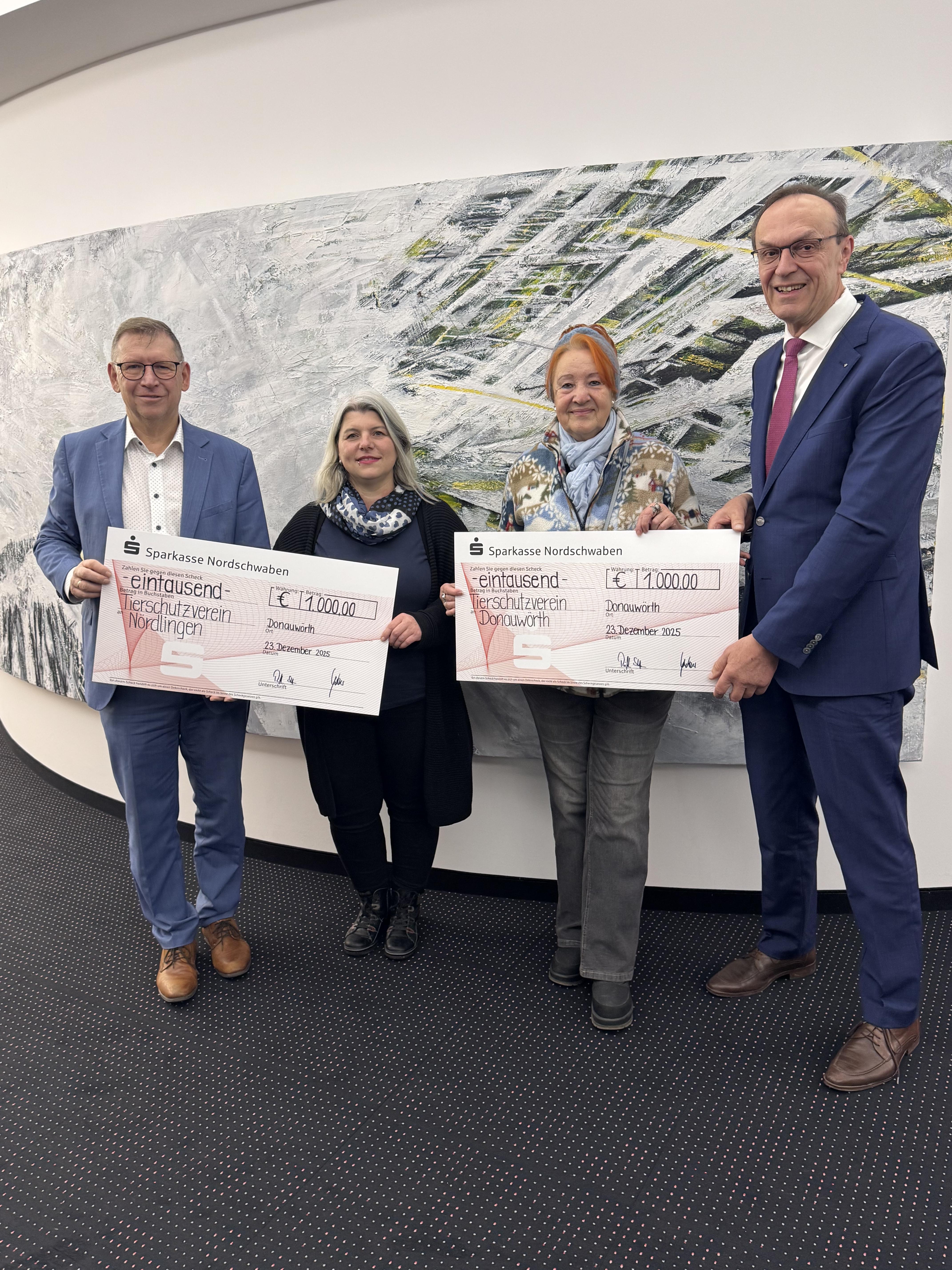 Besonders groß war die Freude daher auf Seiten der beiden Tierschutzvereine in Donauwörth und Nördlingen anlässlich der pünktlich zum Weihnachtsfest auf Vorschlag von Landrat Stefan Rößle erfolgten Spendenübergabe durch die Sparkasse Nordschwaben.