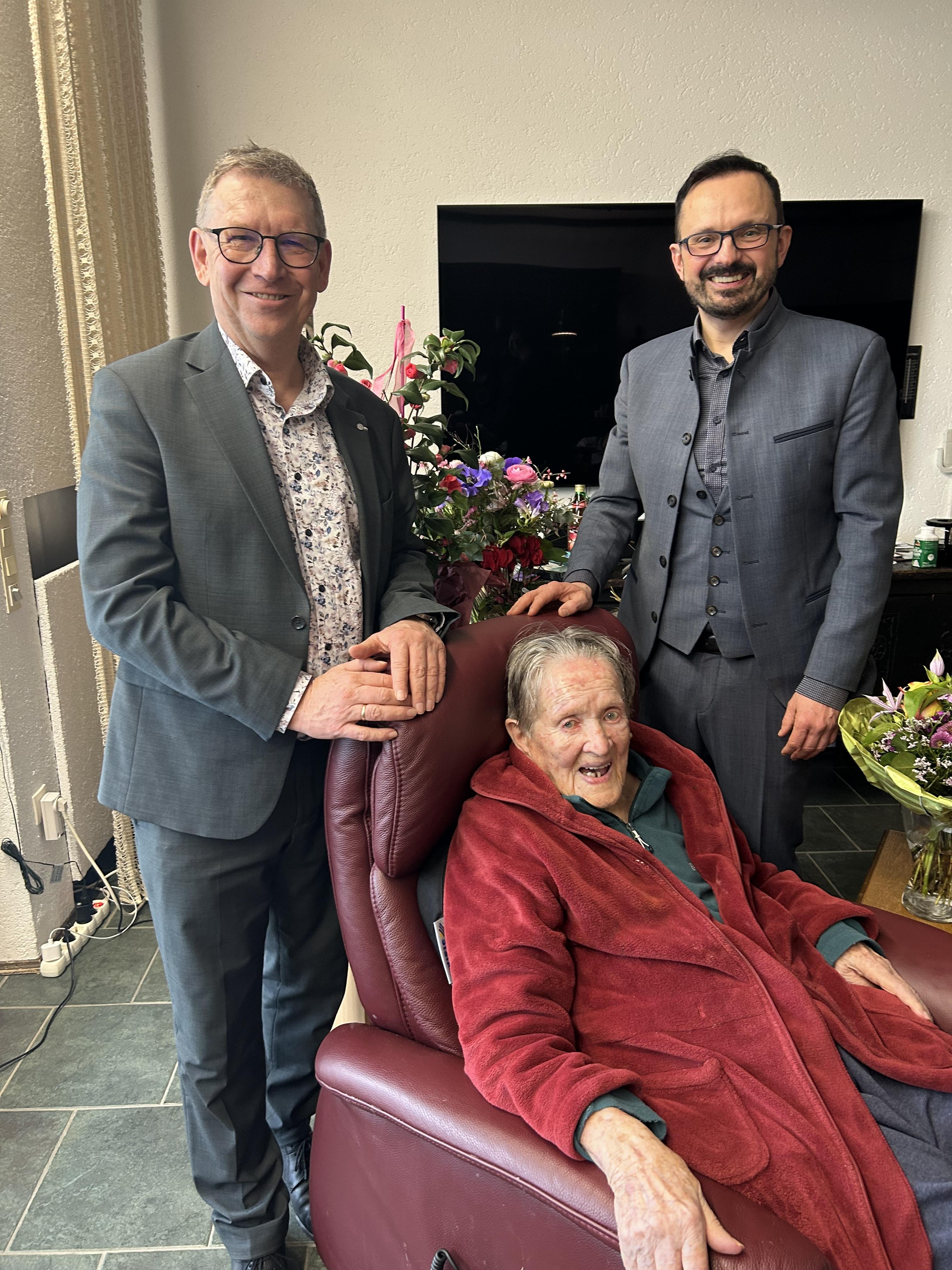 Herzlichen Glückwunsch an Josefa Fest, die wohl älteste Bürgerin im Landkreis Donau-Ries. Ganz herzlich gratulierten Landrat Stefan Rößle und Bürgermeister Dr. Martin Drexler. Im Jahr 1958 wurde in der Altstadt von Wemding der bekannte Kinofilm „Ihr 106. Geburtstag“ unter anderem mit Paul Hubschmid und Peter Weck gedreht. "Nun haben wir wirklich einen 106. Geburtstag", so der Wemdinger Bürgermeister. (dra)