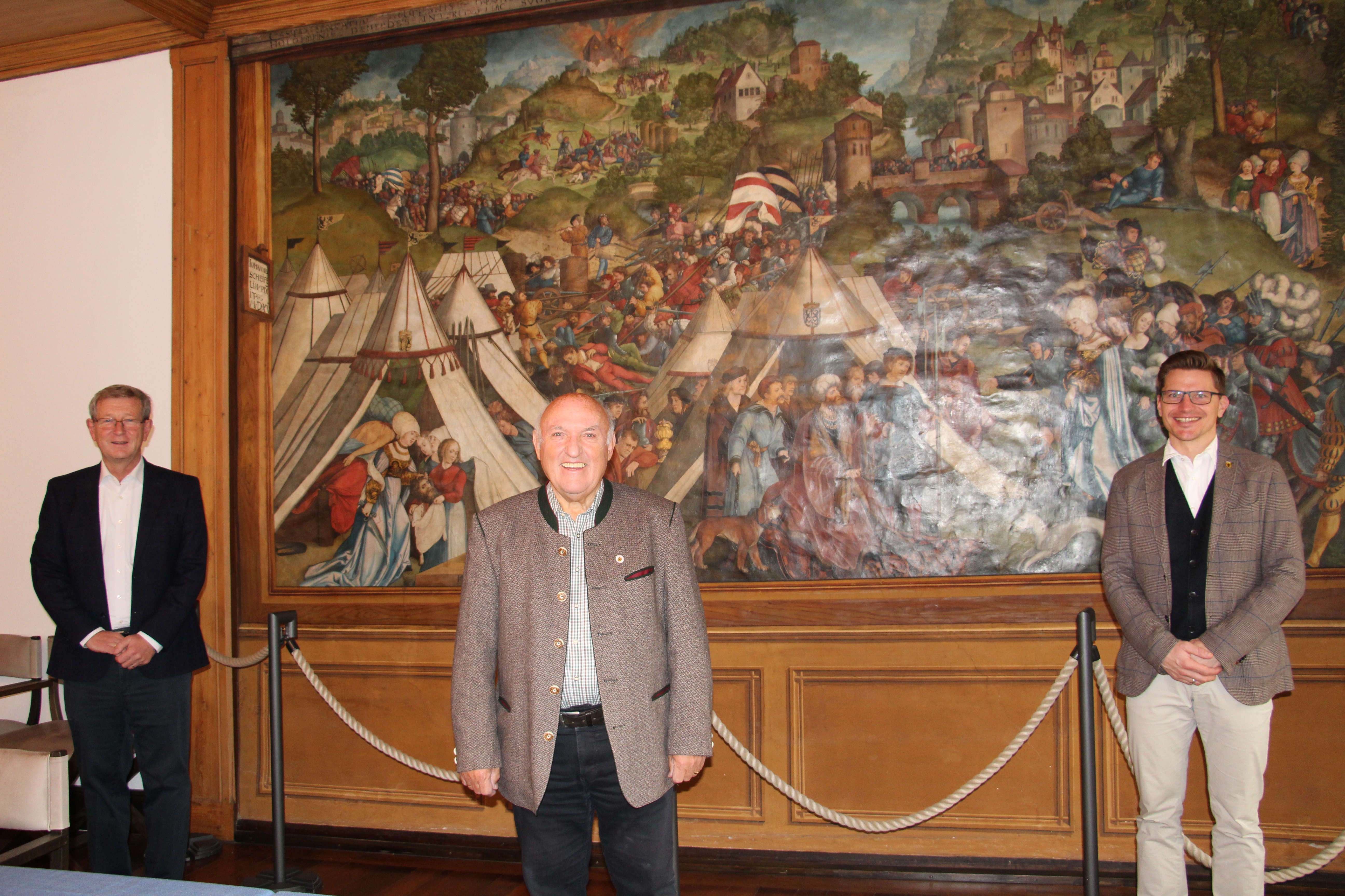 Das Bild zeigt von links Hauptamtsleiter Peter Schiele, Rudi Beck und Oberbürgermeister David Wittner. Bild: Rudi Scherer, Stadt Nördlingen