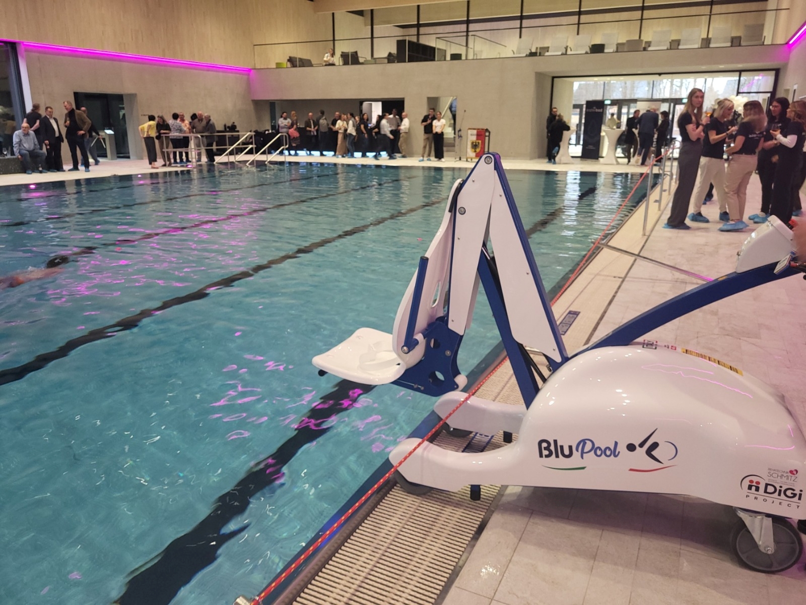 Leitstreifen führen sehbehinderte Menschen vom Eingang zum Empfang und weiter zur Sauna oder in den Badebereich. In beiden Bereichen stehen großzügige barrierefreie Umkleiden, Duschen und Toiletten zur Verfügung. Ein Lift ermöglicht es, sitzend sicher ins Wasser gelassen zu werden. Und das Wichtigste: Das Personal ist aufmerksam, hilfsbereit und engagiert. Für Menschen mit Handicap gilt ein ermäßigter Eintritt. Mit dem Merkzeichen „B“ im Schwerbehindertenausweis erhält die Begleitperson freien Eintritt. "Wir als Inklusionsrat sind stolz auf das, was hier gemeinsam entstanden ist. Wir wünschen allen Badegästen – mit und ohne Handicap – wundervolle, entspannte Stunden im neuen Kraterbad", so Küffner.