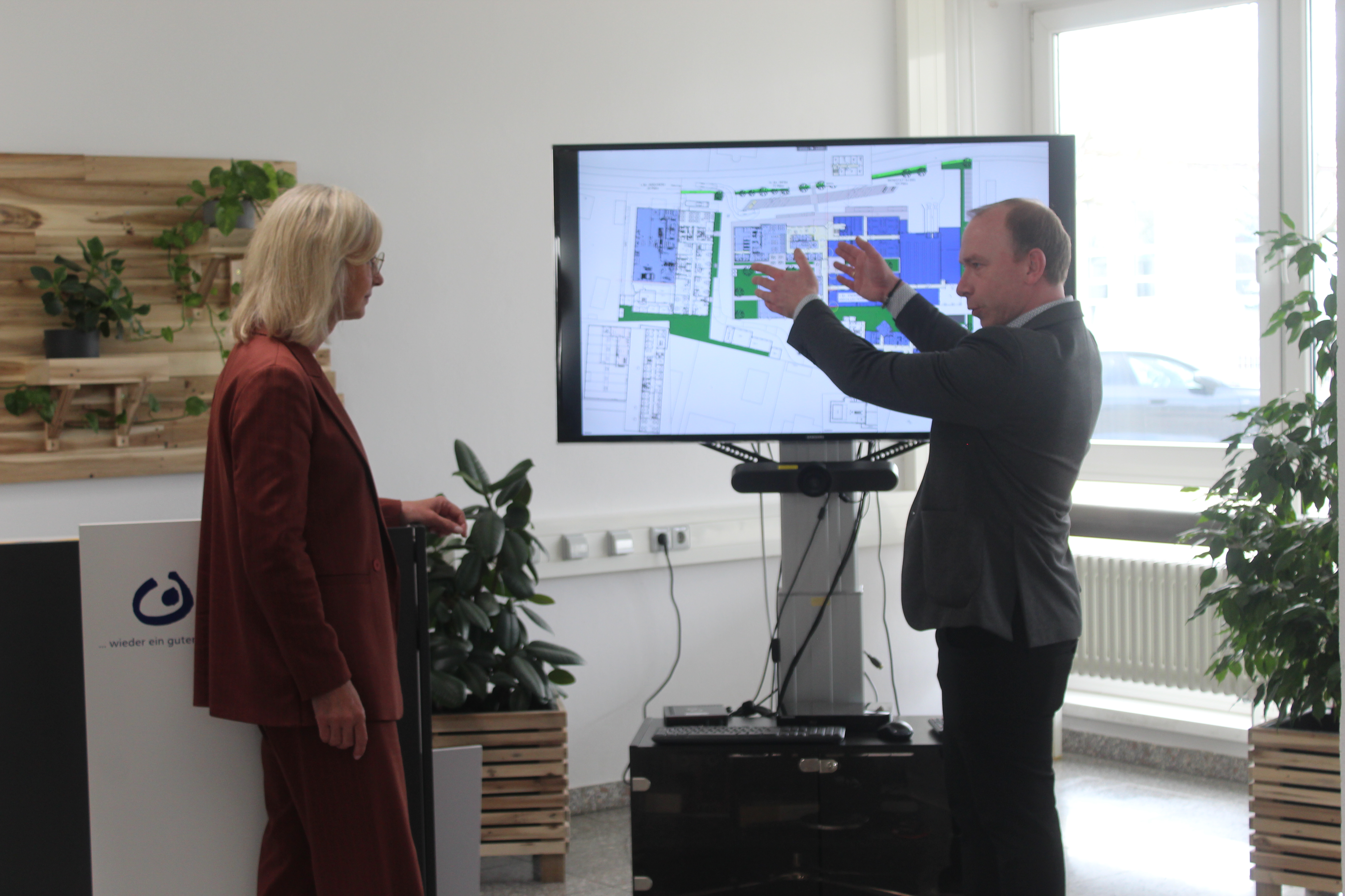 Eine besondere Herausforderung stellt die Organisation während der Bauarbeiten dar. Im betroffenen Gebäudeteil arbeiten aktuell rund 100 Personen – sowohl Beschäftigte als auch betreute Mitarbeitende. Für sie müssen während Abriss und Neubau Ausweichflächen geschaffen werden. Geplant ist daher ein paralleler Neubau auf einem anderen Teil des Geländes. Ein Teil der Beschäftigten wird dort dauerhaft untergebracht, andere kehren nach Fertigstellung in den modernisierten Hauptbereich zurück.