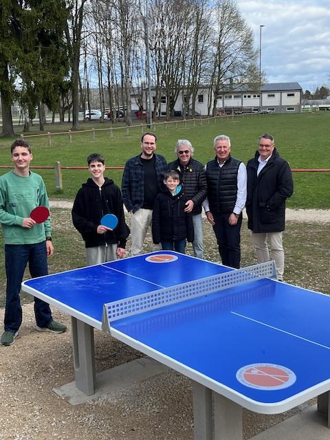 Mit Hilfe der großzügigen Geldspenden der Firmen Lang Isoliertechnik und Brillenmeister im Ried konnte die Juventas-Johann Streitberger Stiftung in Asbach-Bäumenheim eine neue Outdoortischtennisplatte, im Wert von ca. 3.200 Euro finanzieren.