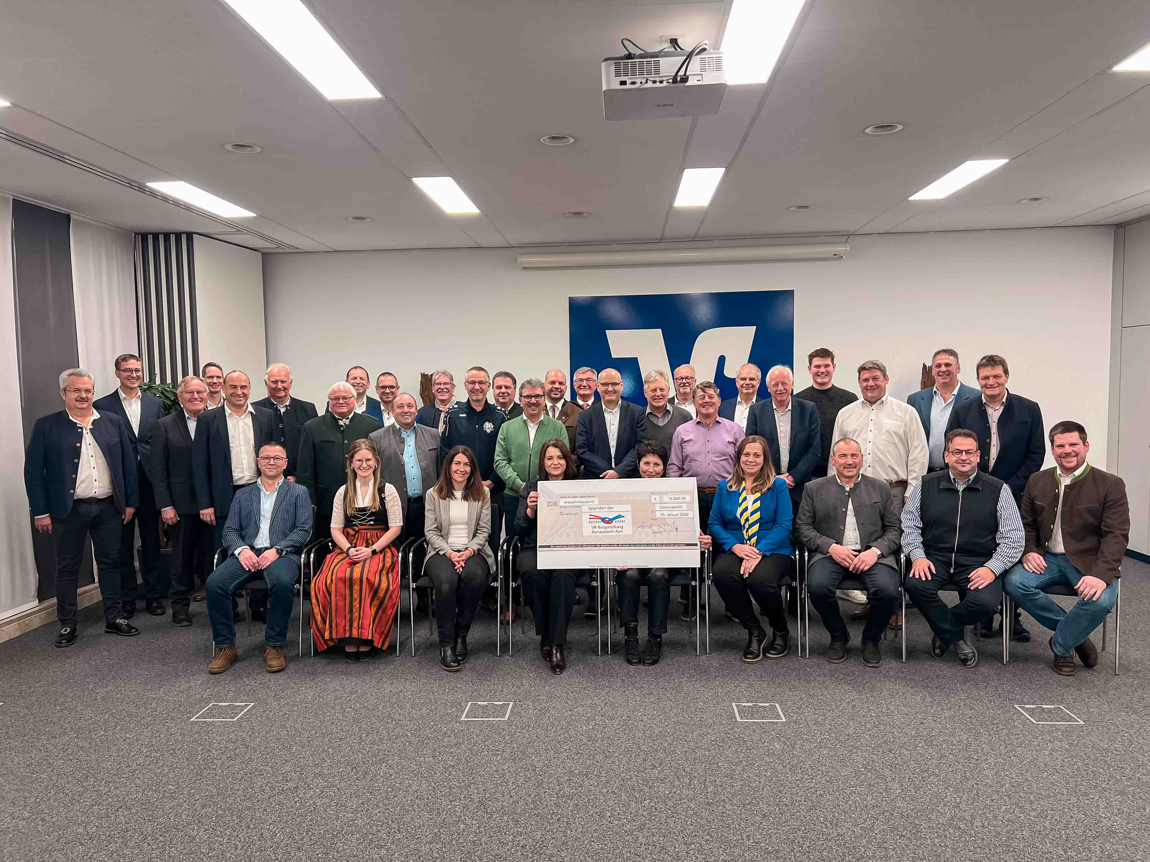 Die feierliche Übergabe des symbolischen Spendenschecks fand in den Veranstaltungsräumen der Raiffeisen-Volksbank Donauwörth eG statt. Die Kreditgenossenschaft ist gemeinsam mit der heutigen VR-Bank Neuburg-Rain Gründer der VR-Bürgerstiftung. Zum Festakt kamen rund 40 Vertreter aus den Vereinen und Einrichtungen sowie einige Bürgermeister aus den Kommunen. Erstmals begrüßte Michael Kruck als neuer Stiftungsvorstandsvorsitzender die Gäste. Der ehemalige Vorstand der Raiffeisen-Volksbank Donauwörth eG betonte, dass die Stiftung durch die Spendenvergaben Solidarität zeigt: „Solidarität ist doch das, was unsere Gesellschaft zusammenhält und verbindet“, sagte Kruck. Es freue ihn, dass sich die Bürgerstiftung zu einem festen Solidaritäts-Partner etabliert hat und seit ihrer Gründung im Jahr 2008 kontinuierlich Einrichtungen, Institutionen und Vereine unterstützt. Bei der Spendenübergabe dabei waren auch die Stiftungsvorstände Franz Miller und Wolfgang Schlicker. (dra)