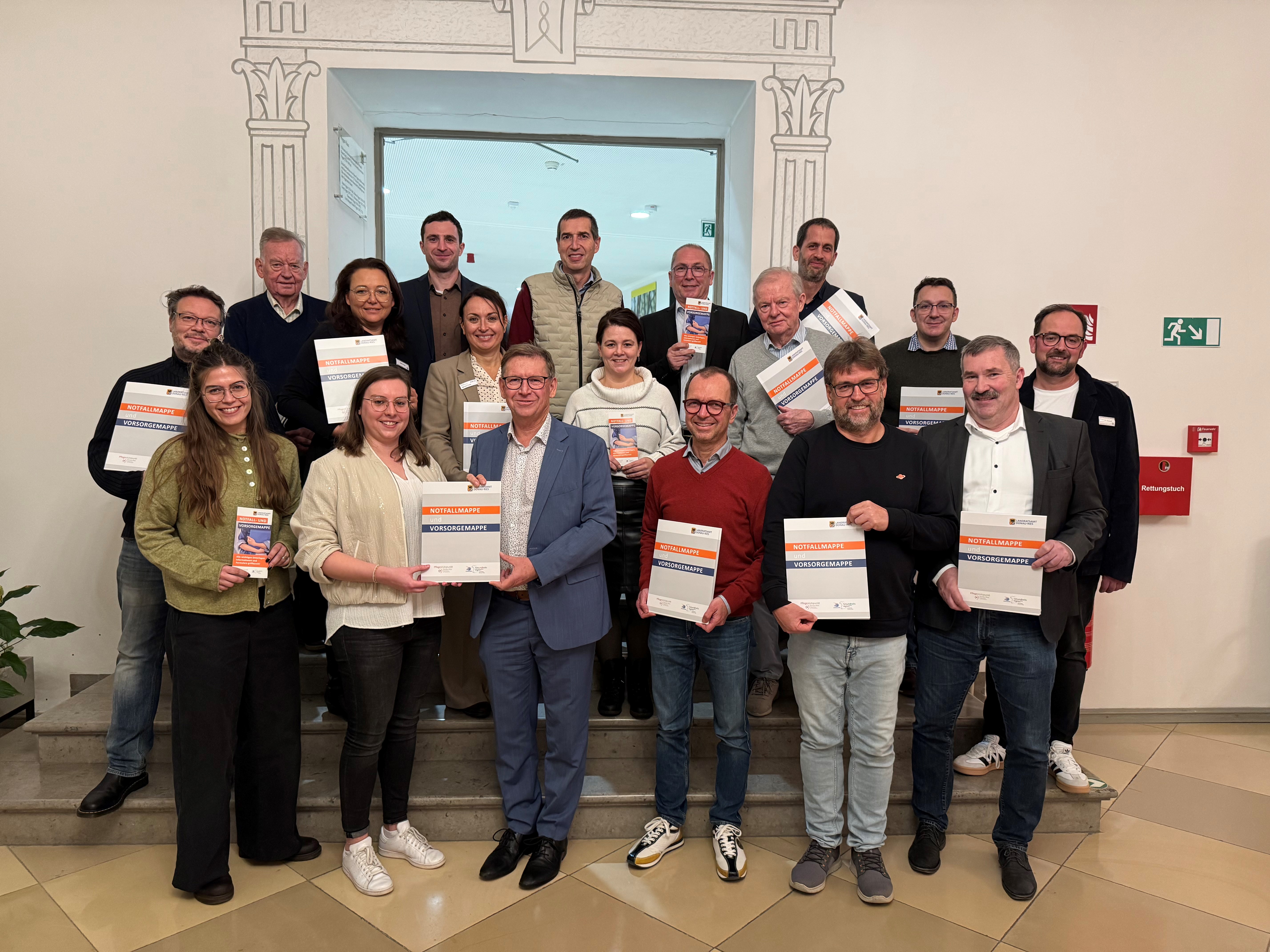 Der zweite Teil der Veranstaltung stand ganz im Zeichen der persönlichen Vorsorge. Lux stellte den Teilnehmerinnen und Teilnehmer das regionale Projekt „Notfall- und Vorsorgemappe“ vor und zeigte auf, dass diese den Bürgerinnen und Bürgern eine strukturierte Unterstützung im medizinischen Ernstfall sowie für Vorsorgethemen bietet.