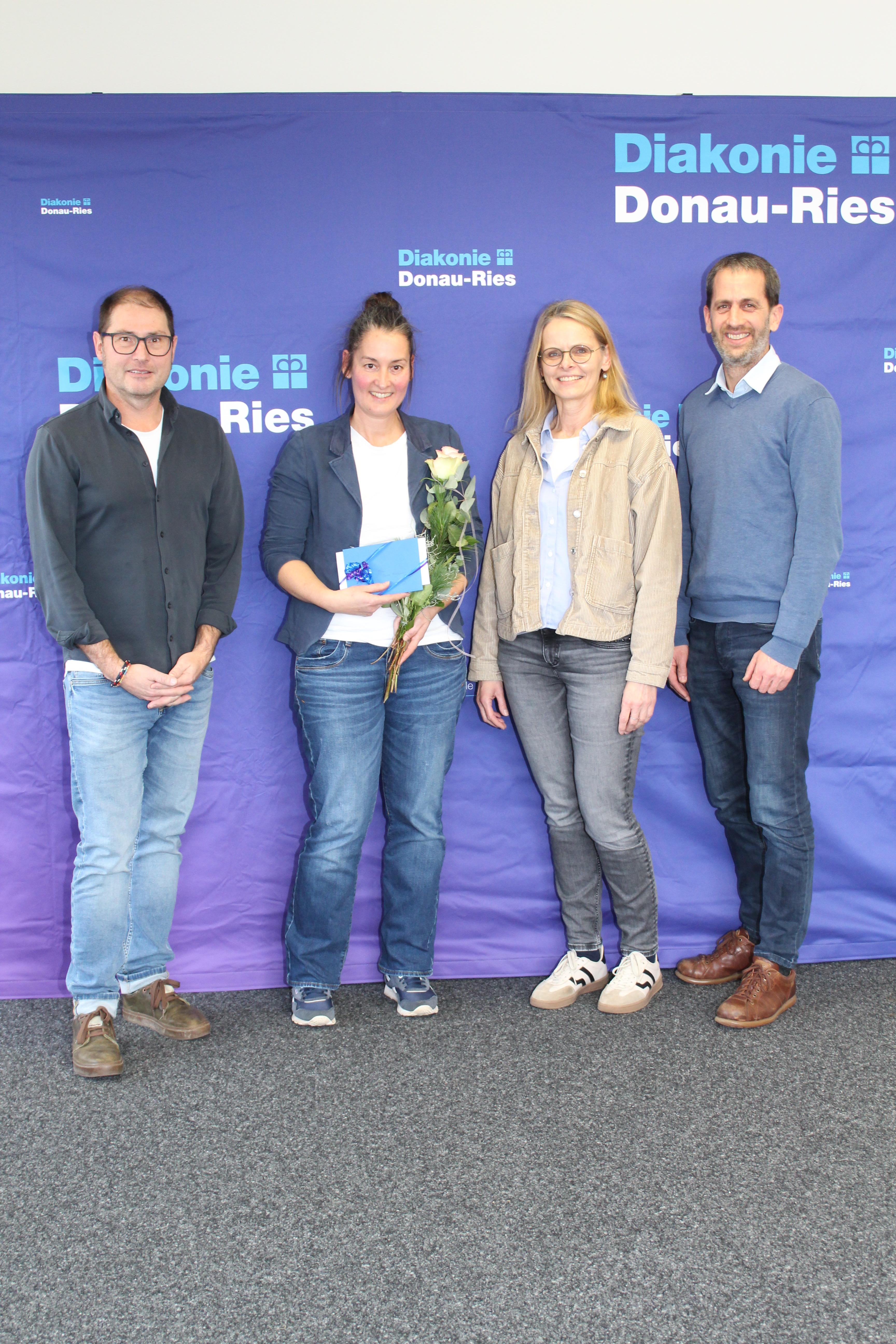 Inzwischen ist an jedem der Diakonie-Standorte im Landkreis eine solche Pflegepuppe im Einsatz. In den Übungsräumen können Auszubildende ohne Zeitdruck Fragen stellen, Abläufe besprechen und Sicherheit gewinnen. Begeistert von der Idee bis zur kreativen Umsetzung zeigt sich die Teamleitung Pflege der Diakonie Donau-Ries, Beatrix Meyr-Digeser: „Hier wird zurecht der engagierte Einsatz im Sinne einer qualitativ hochwertigen Ausbildung gewürdigt.“ Auch Geschäftsführer Johannes Beck zeigt sich hoch erfreut: „Ich bin sehr stolz auf den Erfolg unserer Mitarbeiterin. Es zeigt, wie engagiert unsere Kolleginnen und Kollegen in der Anleitung sind – und welch hohe Qualität unsere Ausbildung hat. Darauf legen wir großen Wert und dafür engagiert sich die Diakonie ganz bewusst.“ In einer kleinen Feierstunde wurde die erfolgreiche Kollegin von der Teamleitung und den beiden Geschäftsführern geehrt. Das Engagement sei ein starkes Beispiel dafür, wie Eigeninitiative und fachliche Kompetenz die Arbeit nachhaltig bereichern, sagte Beck.