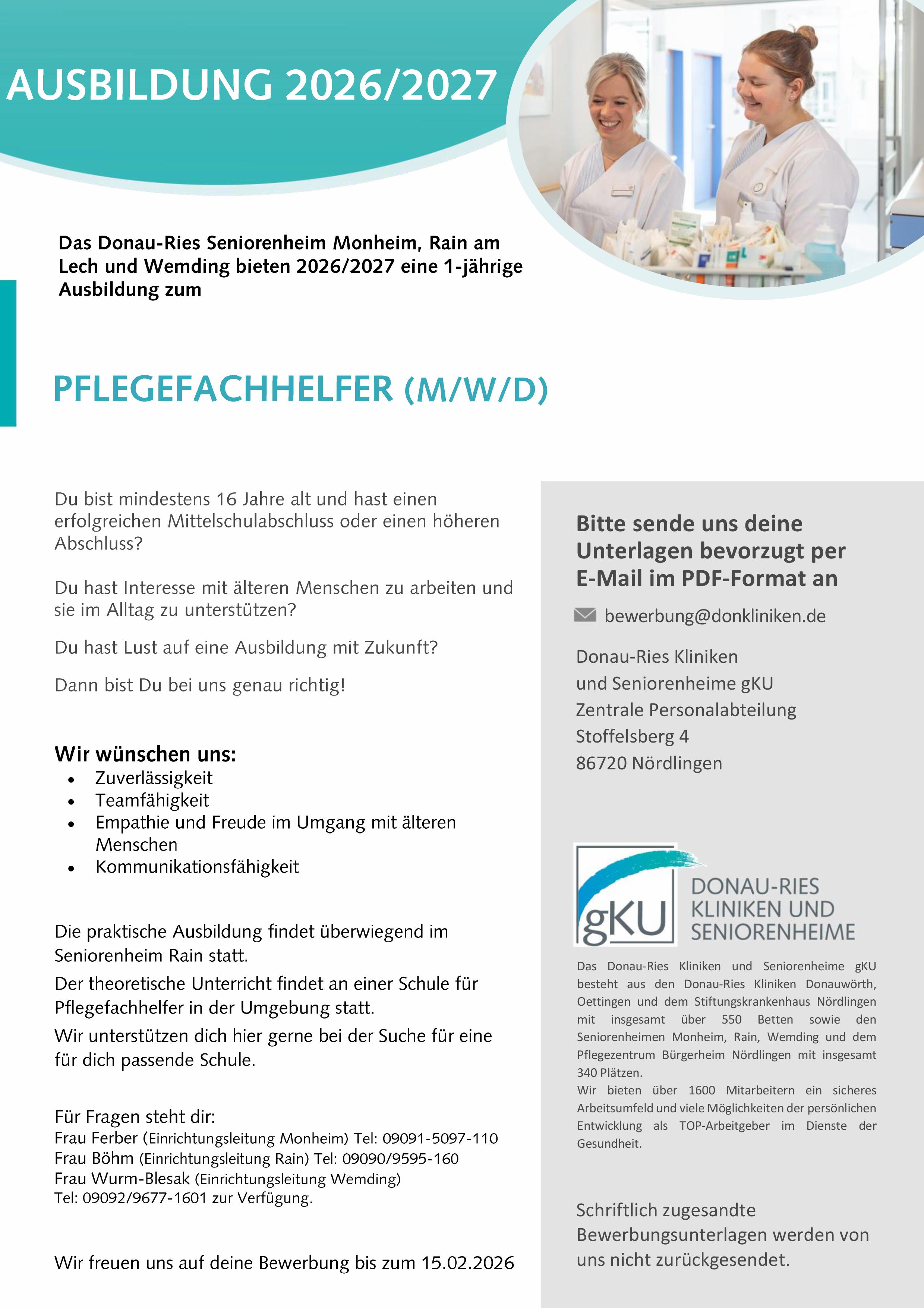 Ausbildung zum Pflegefachhelfer (m/w/d)