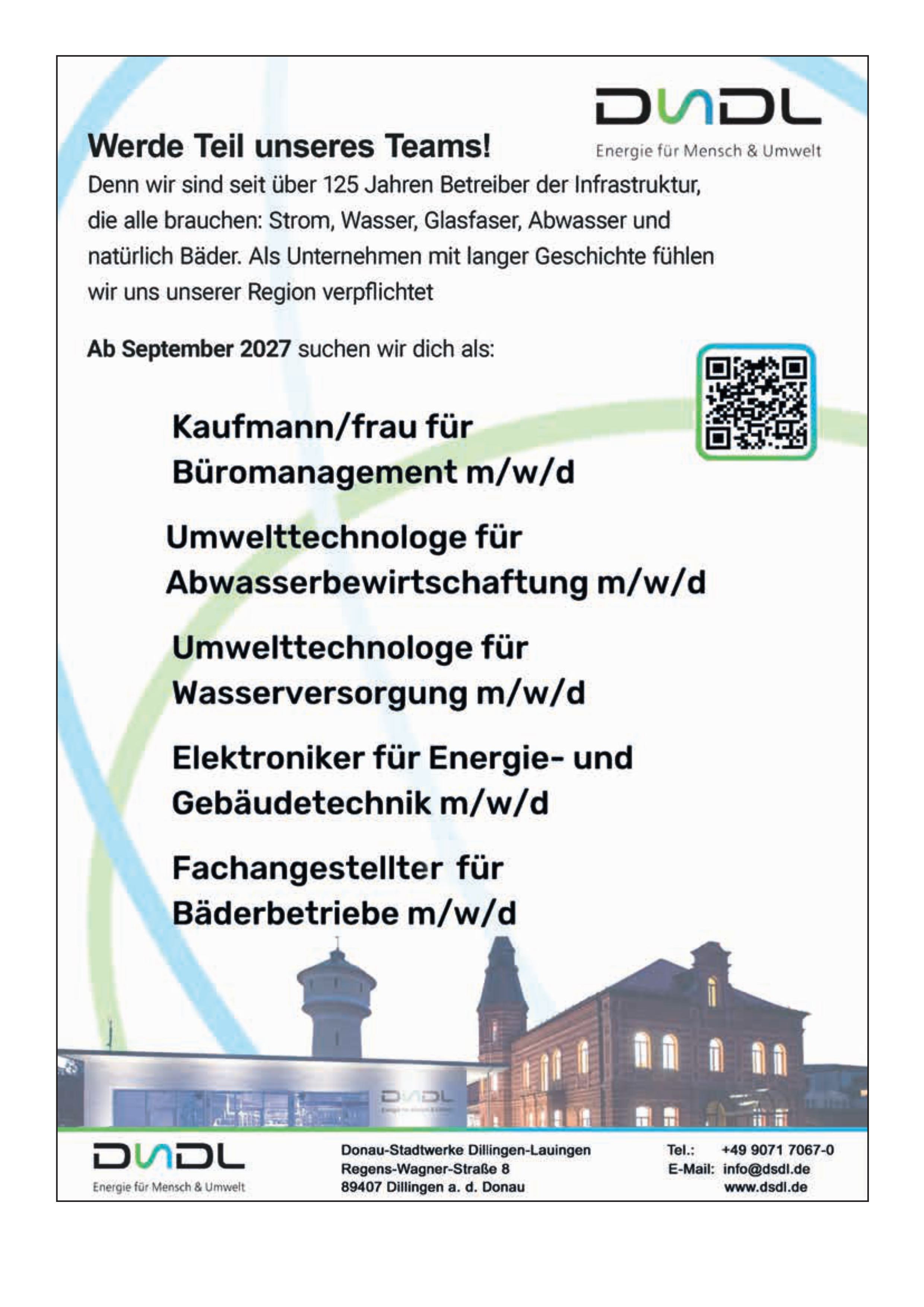 Ausbildungsplätze bei den Donau-Stadtwerken Dillingen-Lauingen (m/w/d)