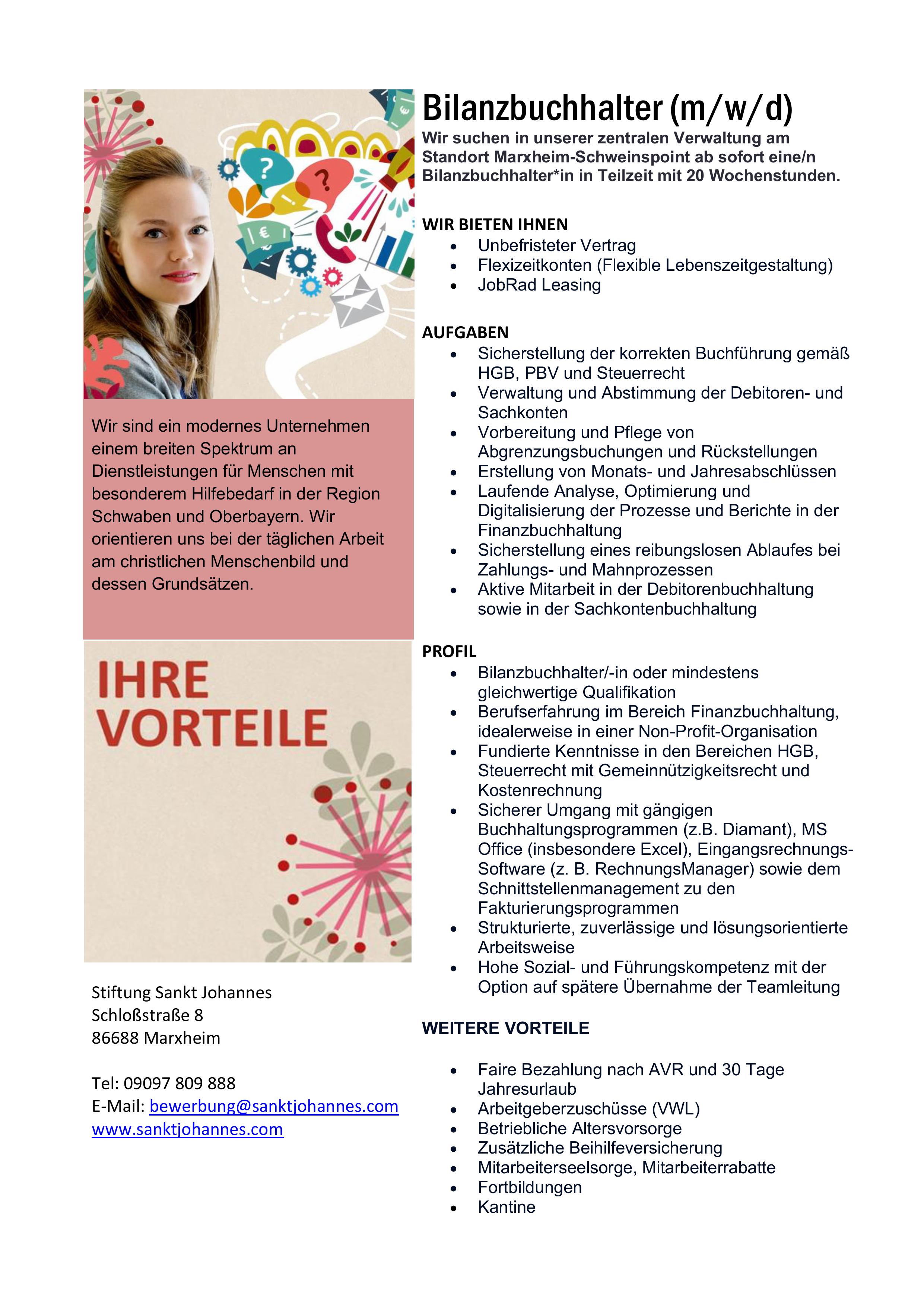 20. Januar 2026 Top-Job Teilzeit Bilanzbuchhalter (m/w/d) Sankt Johannes Schloßstraße 8 86688 Marxheim Zur Webseite » Bild: privat Stellenanzeige herunterladen Büro