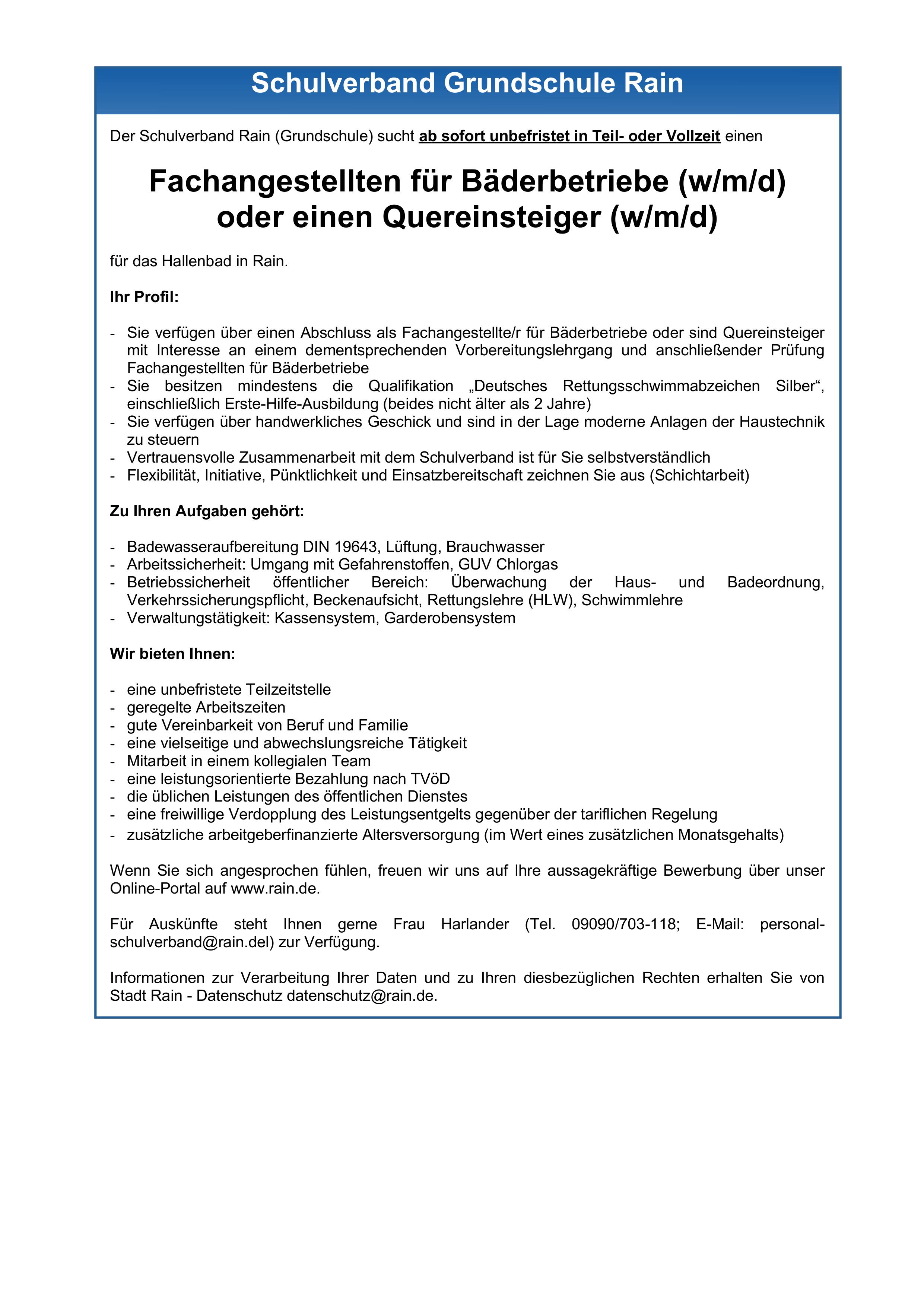 Fachangestellter für Bäderbetriebe oder Quereinsteiger (w/m/d)