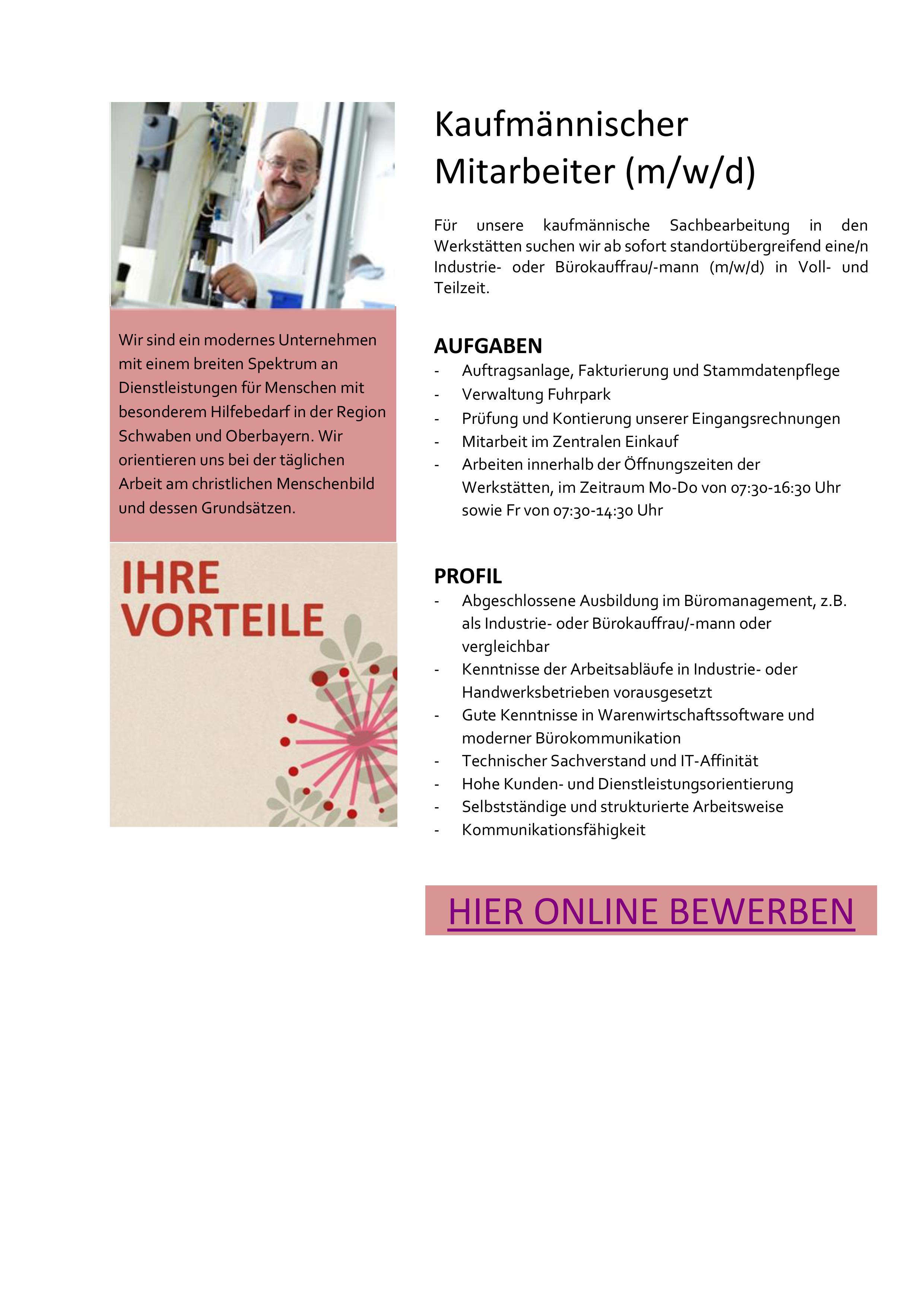 26. Februar 2026 Top-Job Vollzeit Teilzeit Kaufmännischer Mitarbeiter (m/w/d) Sankt Johannes Schloßstraße 8 86688 Marxheim Zur Webseite » Bild: privat Stellenanzeige herunterladen Büro