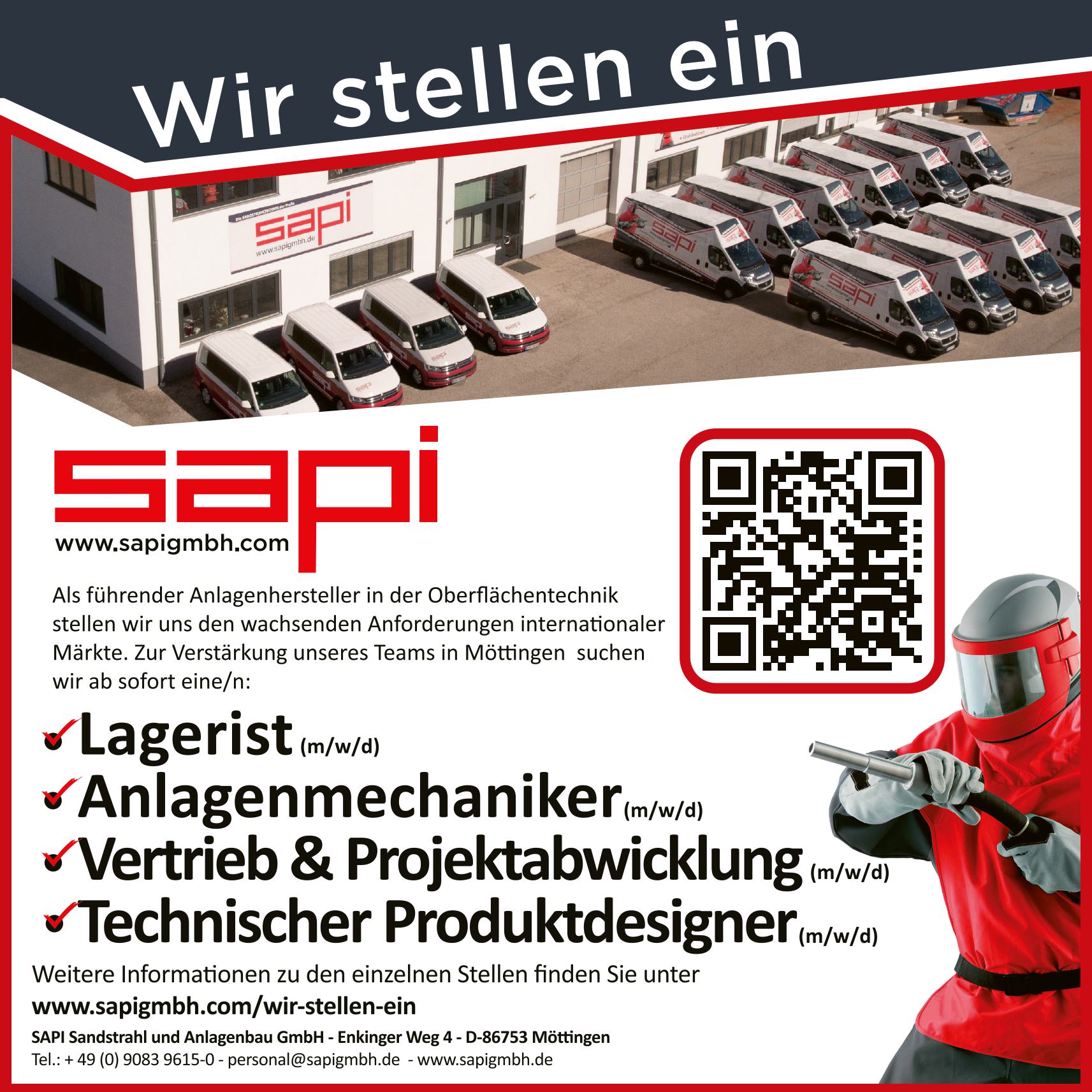 Lagerist (m/w/d); Anlagenmechaniker (m/w/d); Vertrieb & Projektabwicklung (m/w/d); Technischer Produktdesigner (m/w/d)