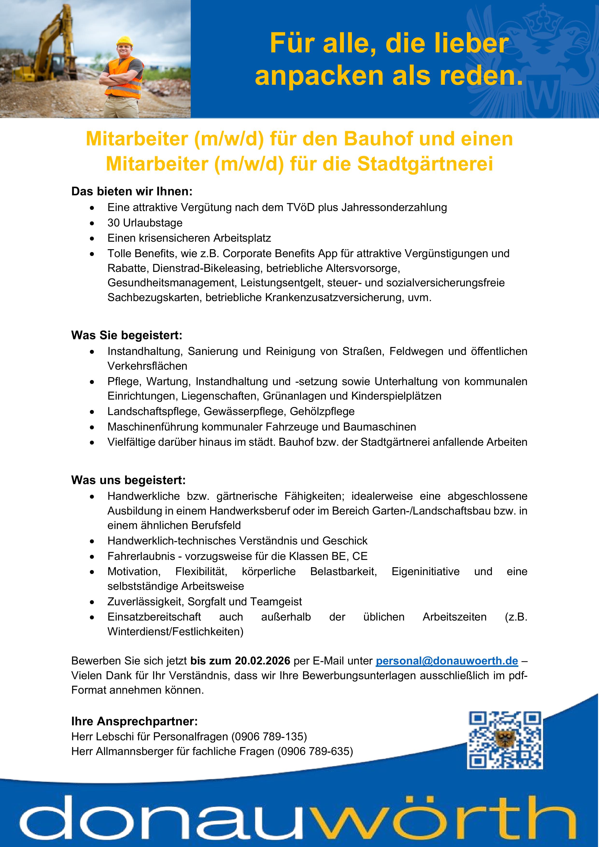 Mitarbeiter für den Bauhof und einen Mitarbeiter für die Stadtgärtnerei (m/w/d)