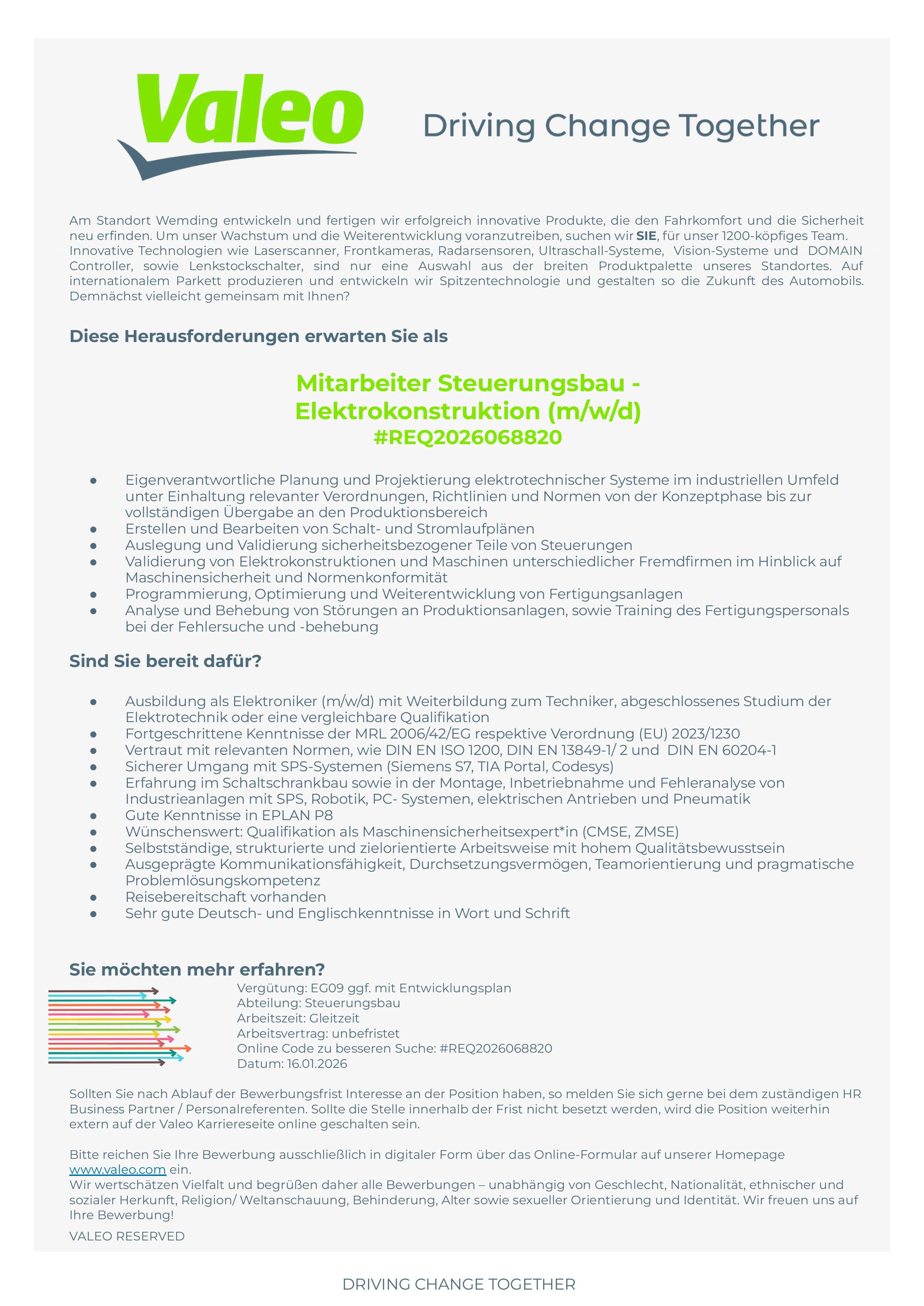 Mitarbeiter Steuerungsbau - Elektrokonstruktion (m/w/d)