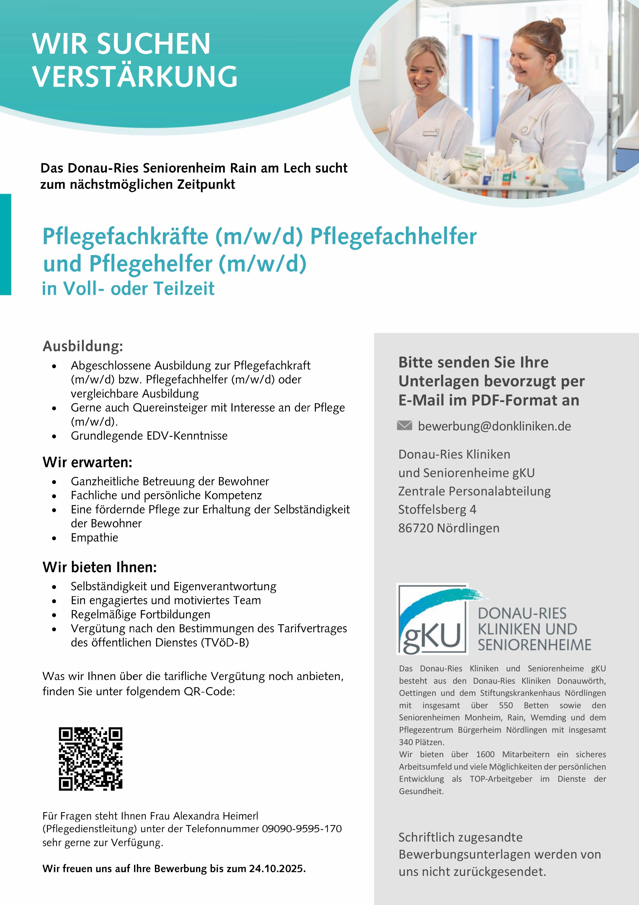 Pflegefachkräfte, Pflegefachhelfer und Pflegehelfer (m/w/d)