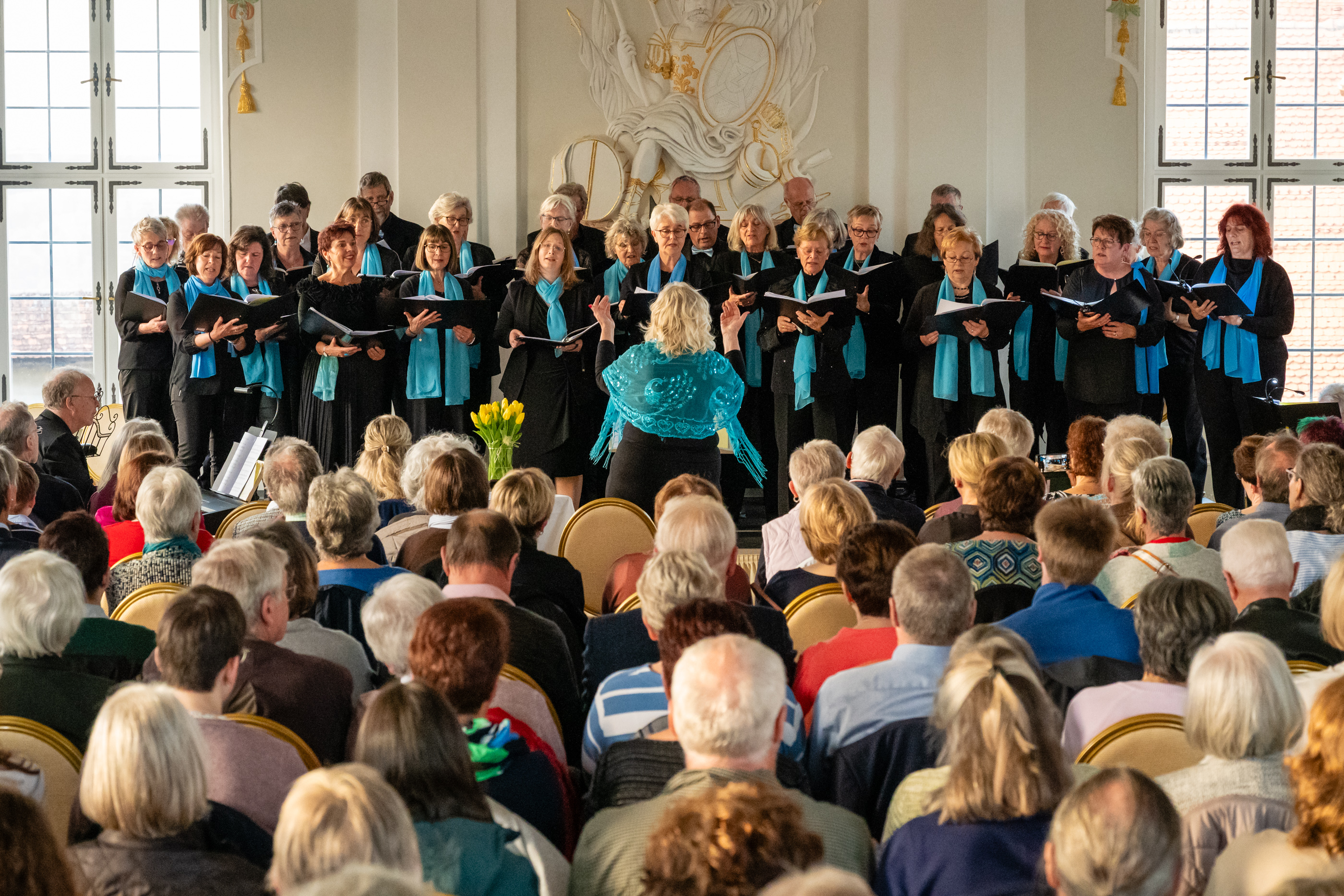 Zum vierten Mal gastiert der Projektchor Ammersee-Harburg-Mallorca in der Burgstadt, diesmal im Fürstensaal der Harburg, der dankenswerterweise unter Vermittlung von Doris Thürheimer (Harburger Bildungswerk/VHS der Stadt) von der Fürstlichen Kulturstiftung zur Verfügung gestellt worden war. Unter der bewährten Leitung von Luise Förg, die nicht nur ihren Chor, sondern auch das Publikum liebenswert und gekonnt durch den Abend führte, wurde ein buntes Programm aus Volkslied, Pop, Musical und Oper dargeboten. Am Klavier begleitete Norbert Henß routiniert und zuverlässig die unterschiedlichsten Bereiche der Chormusik.