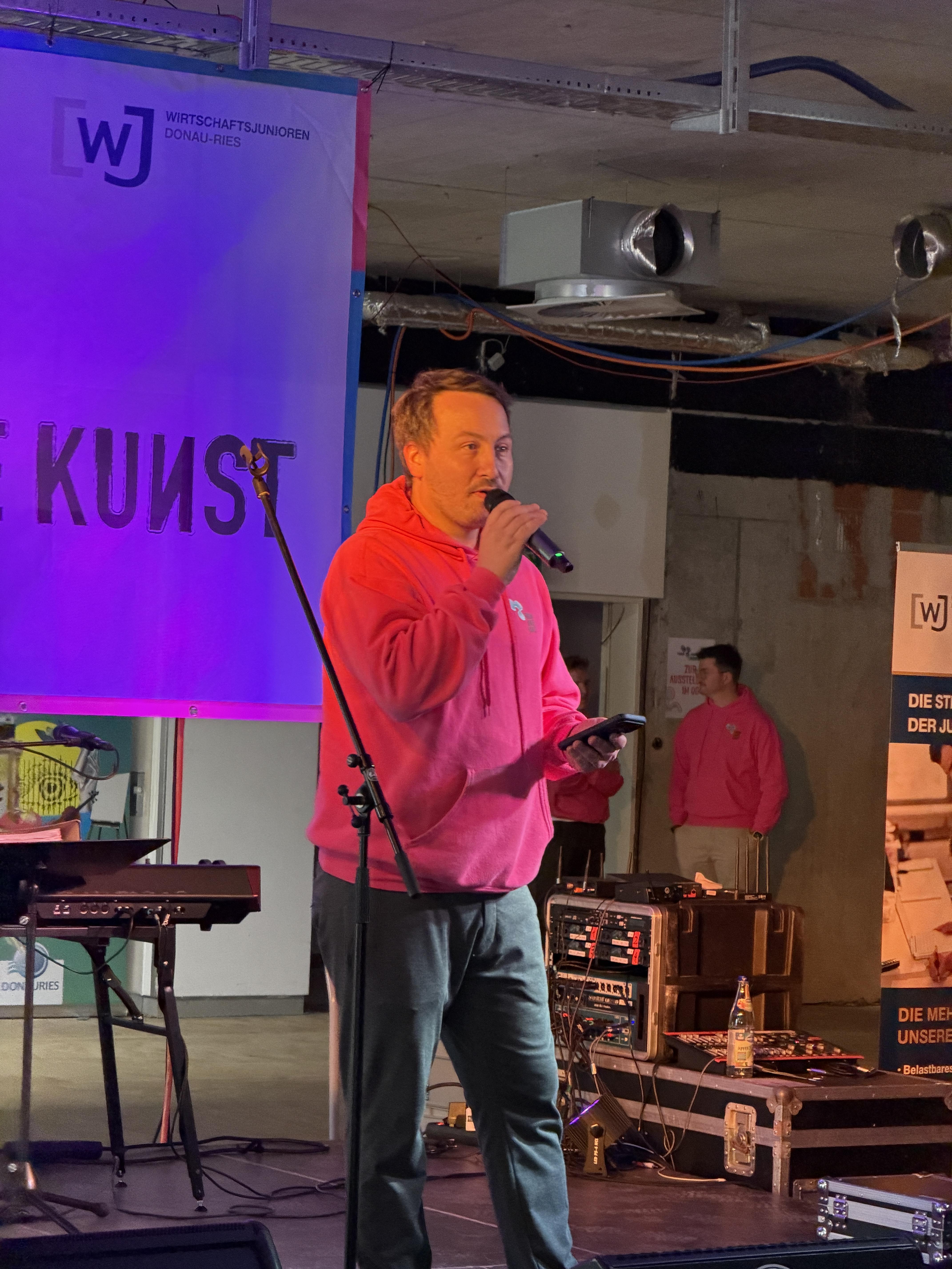 Bereits zum Auftakt wurde deutlich: Auch in diesem Jahr zeigen sich junge Menschen aus der Region mit einer breiten Vielfalt an Kunst. Ob Malen, Zeichnen, Musik oder etwas ganz anderes. Kunst ist vielfältig und das erlebt man dieses Wochenende in Donauwörth. Die Wirtschaftsjunioren Donau-Ries verwandelten in tagelanger Arbeit das leerstehende Gebäude in der Spitalstraße in einen lebendigen Treffpunkt für junge Kreativität und kulturellen Austausch.