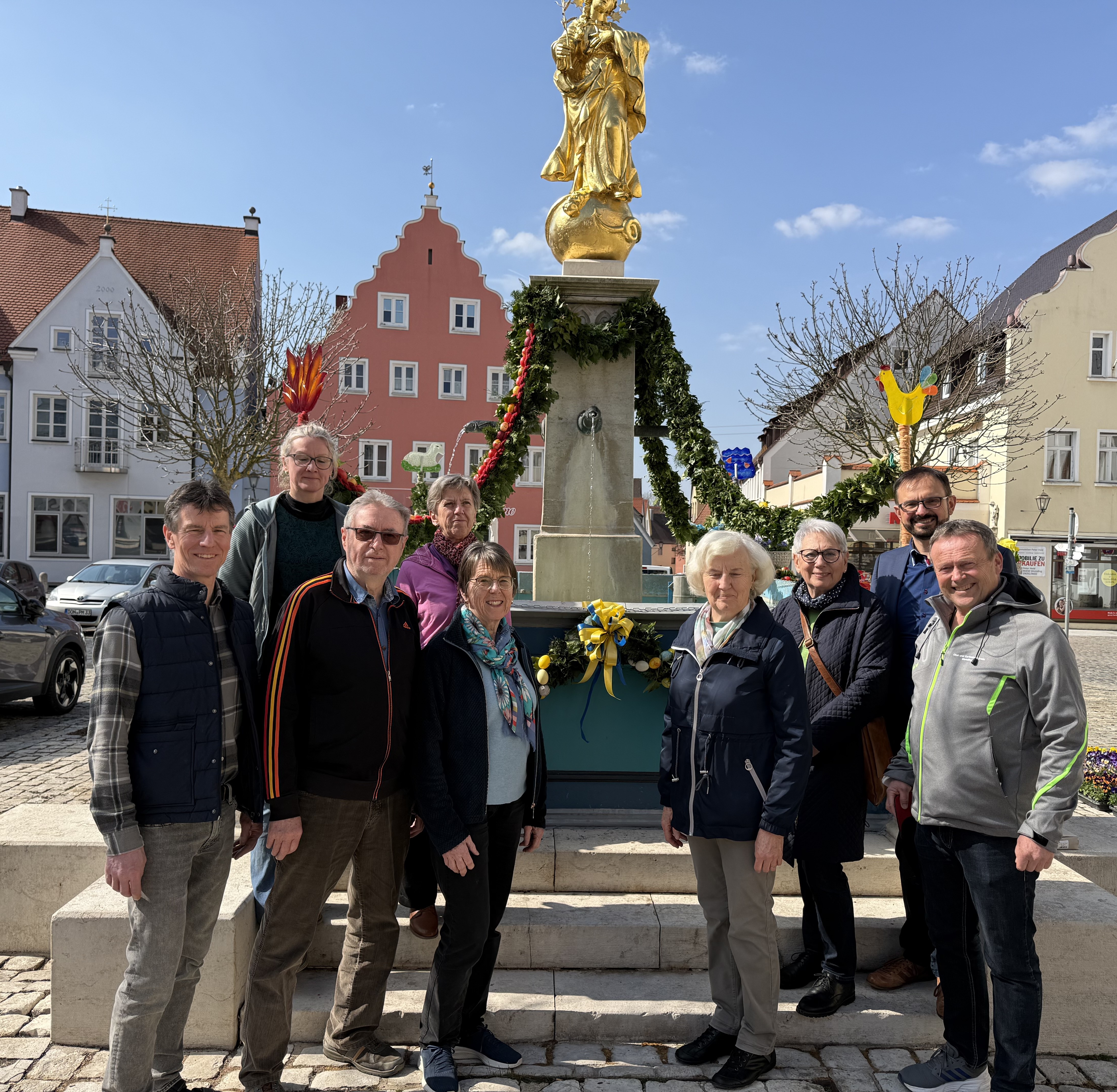 Bürgermeister Dr. Martin Drexler ergänzt: „Der geschmückte Osterbrunnen ist nicht nur ein Symbol für den Frühling und das Osterfest, sondern auch für das Engagement in unserer Stadt“. Mit viel Herzblut übernehmen die Helfer die Vorbereitungen und holen den Schmuck für die Osterzeit hervor. Die mehrere Meter langen Girlanden wurden in mühevoller Arbeit durch den Obst- und Gartenbauvereins unter der Leitung von Vorstand Ernst Rosenwirth in Abstimmung mit Roland Hoinle gebunden. Ohne die Ehrenamtlichen wären solche Aktionen nicht durchführbar. Im Namen der Stadt bedankte sich der Bürgermeister bei allen Beteiligten. (dra)