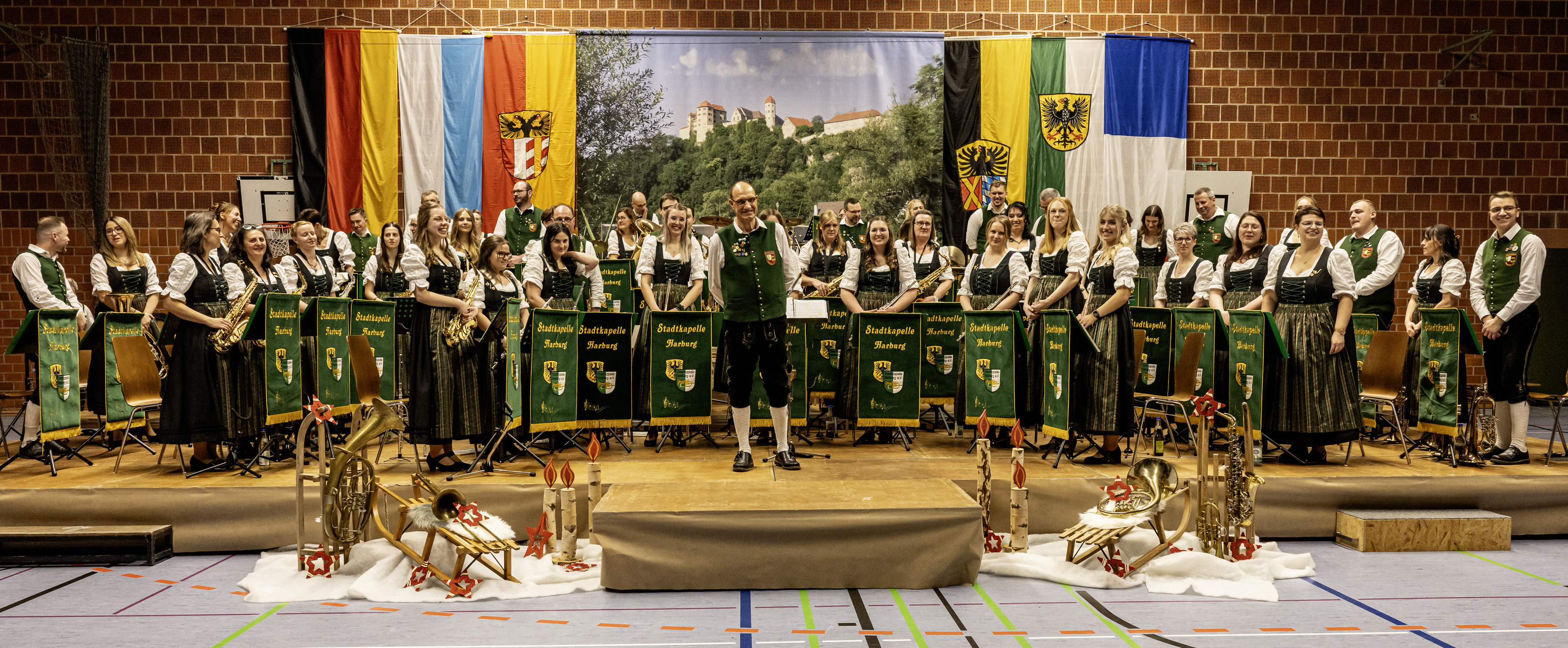 Auch im zweiten Teil des Konzertes überzeugte die Kapelle mit musikalischer Vielfalt. „Forever Young“ wurde eindrucksvoll von den Tenorhörnern und dem Saxophon-Satz solistisch umrahmt, während Sandra Sagemüller sich im Stück „El Bimbo“ präsentierte. Als Dank an ihre Frauen für Ihre Unterstützung trugen Peter Schmidbaur an der Trompete und Martin Baalß am Tenorhorn das Stück „Bohemian Lovers“ solistisch vor, ein emotionaler Moment des Abends.