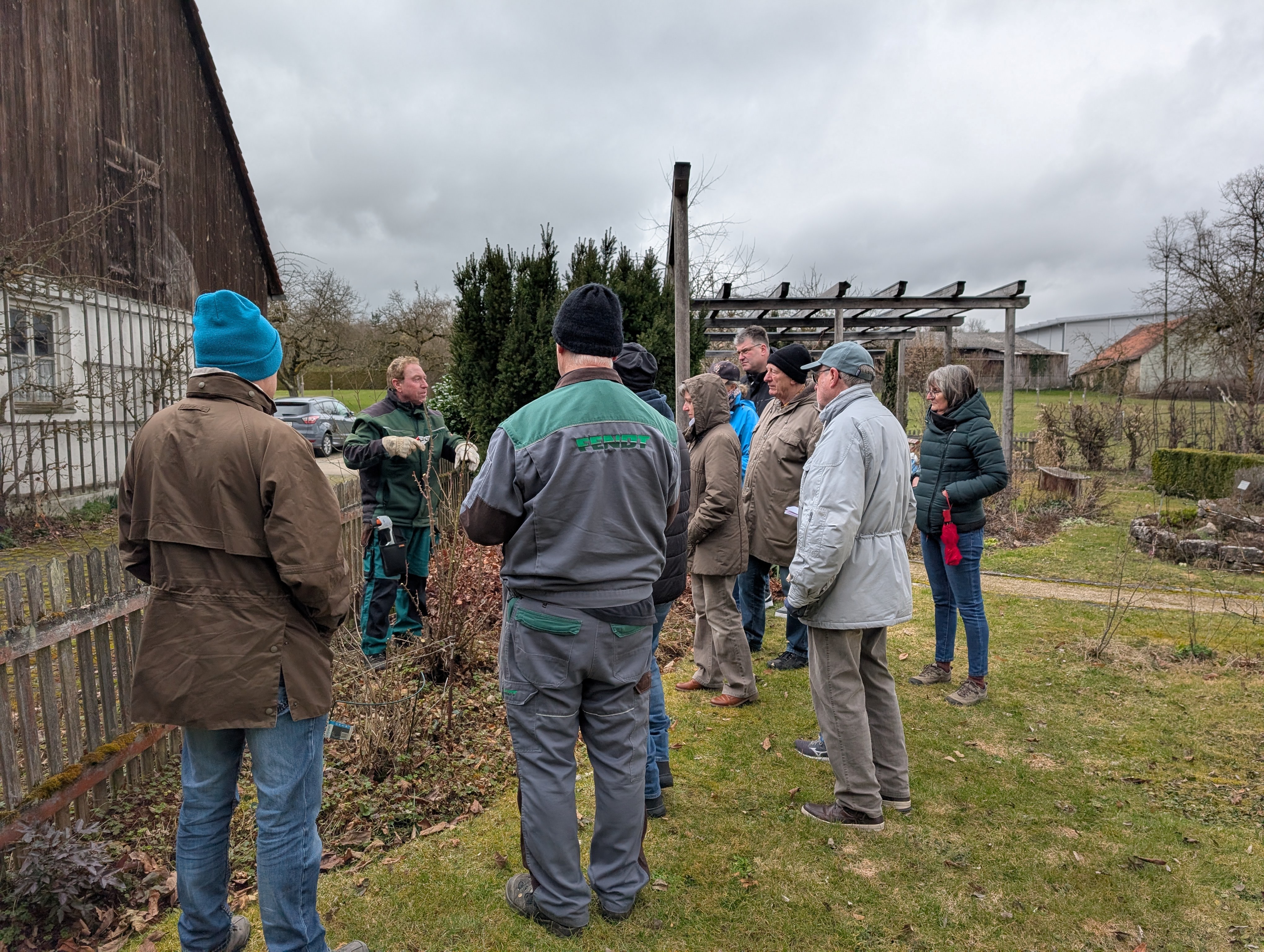 Nachdem die Rosen im Lehrgarten geschnitten waren, ging es weiter in einen Privatgarten in Monheim um noch weitere Praxisbeispiele besprechen zu können. Neben dem jährlich Rosenschnitt, ist es für die Gesundheit der Rosen sehr förderlich, diese gleich auch noch zu Düngen. (dra)