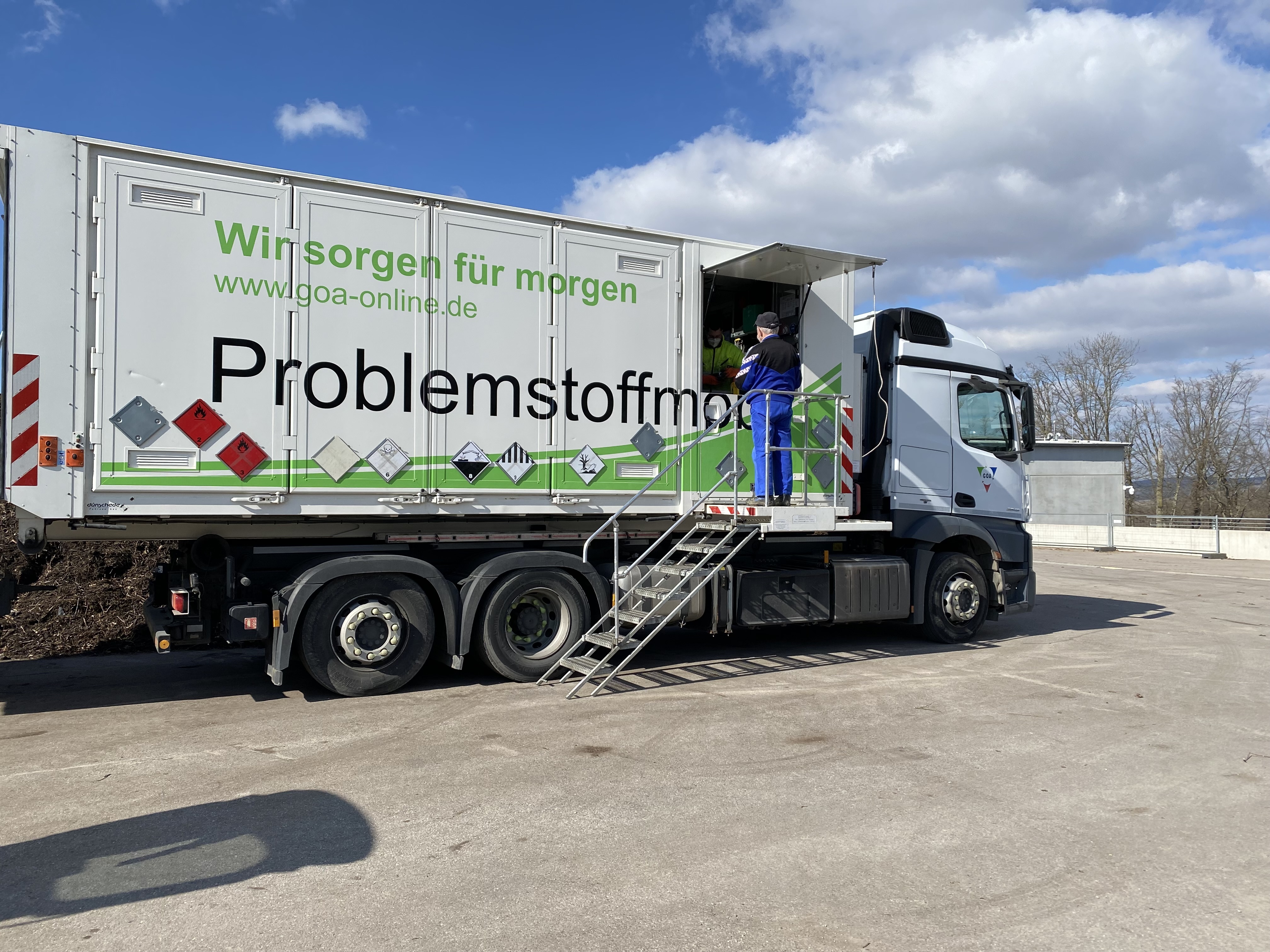 Giftige Farben, Lacke und Flüssigkeiten lassen Sie bitte in den Originalbehältnissen und schütten keinesfalls verschiedene Substanzen zusammen. Außerdem stellen Sie bitte den Problemmüll auf keinen Fall vor dem Eintreffen des Schadstoffmobils ab, sondern übergeben die Kanister und Dosen persönlich dem Fachpersonal vor Ort. Um eine zügige und schnelle Annahme zu gewährleisten ist es hilfreich, wenn die verschiedenen Behältnisse in eine Kiste gestellt werden und so abgegeben werden.