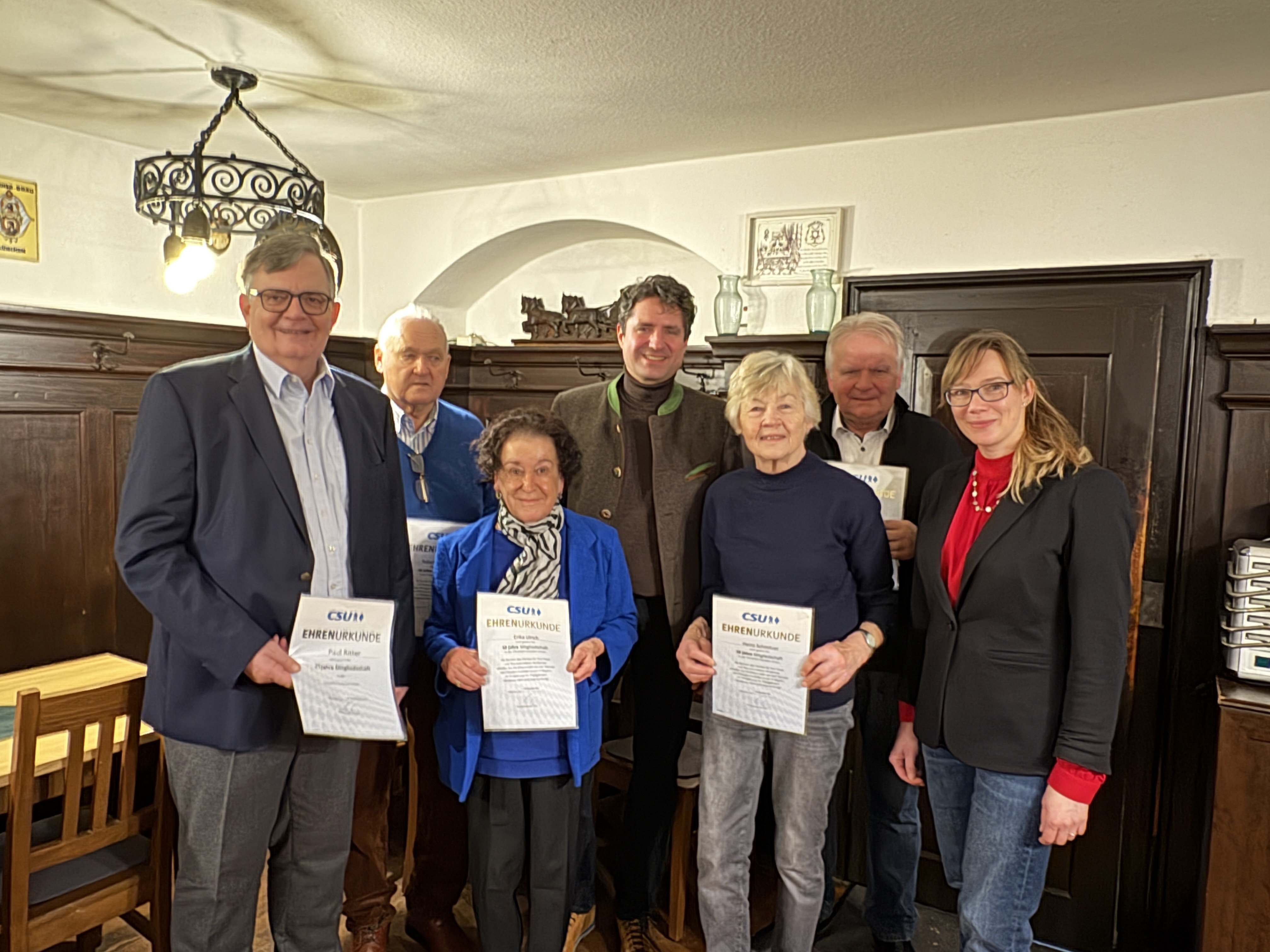 Erika Ulrich, Ria Wagner, Josef Wirth und Robert Schiffelholz sind sogar schon seit 40 Jahren Mitglied in der CSU. Ein besonderes Jubiläum durfte Heinz Schmitzer feiern, der für 50 Jahre Mitgliedschaft in der CSU ausgezeichnet wurde.