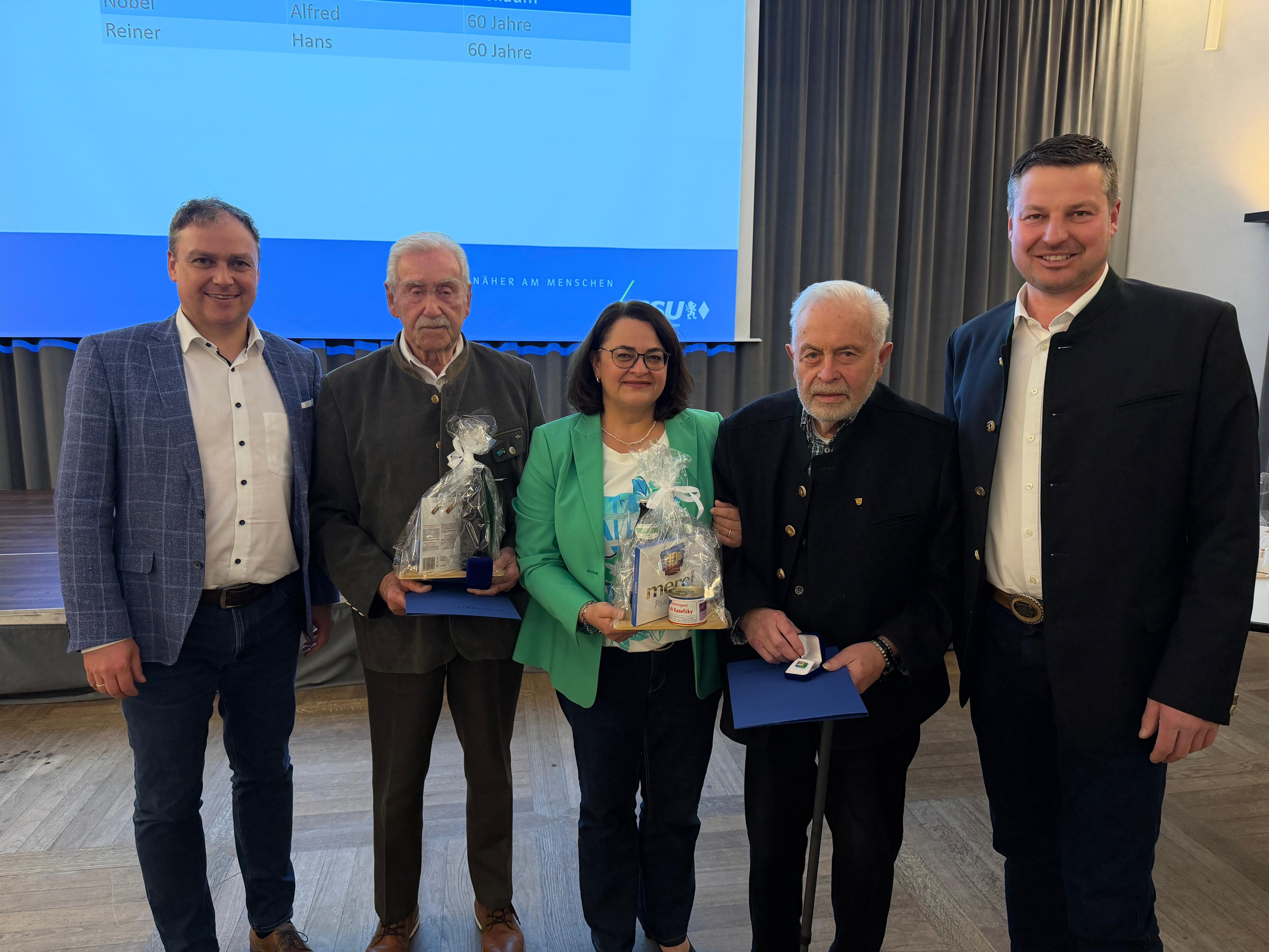 Weiterer Höhepunkt einer rundum gelungenen Jahreshauptversammlung waren die Ehrungen langjähriger Mitglieder. So konnten für 10 Jahre Heike Binder und Christoph Schaible, für 25 Jahre Hildegard Bauer, Josef Fitz und Karl Hofer und für 40 Jahre Marlies Binger, Martina Leinauer und Gisela Reiner geehrt werden. Schließlich erhielten zwei Mitglieder, Alfred Nobel und Hans Reiner für bereits 60 Jahre Treue zum Verein, eine Ehrung.