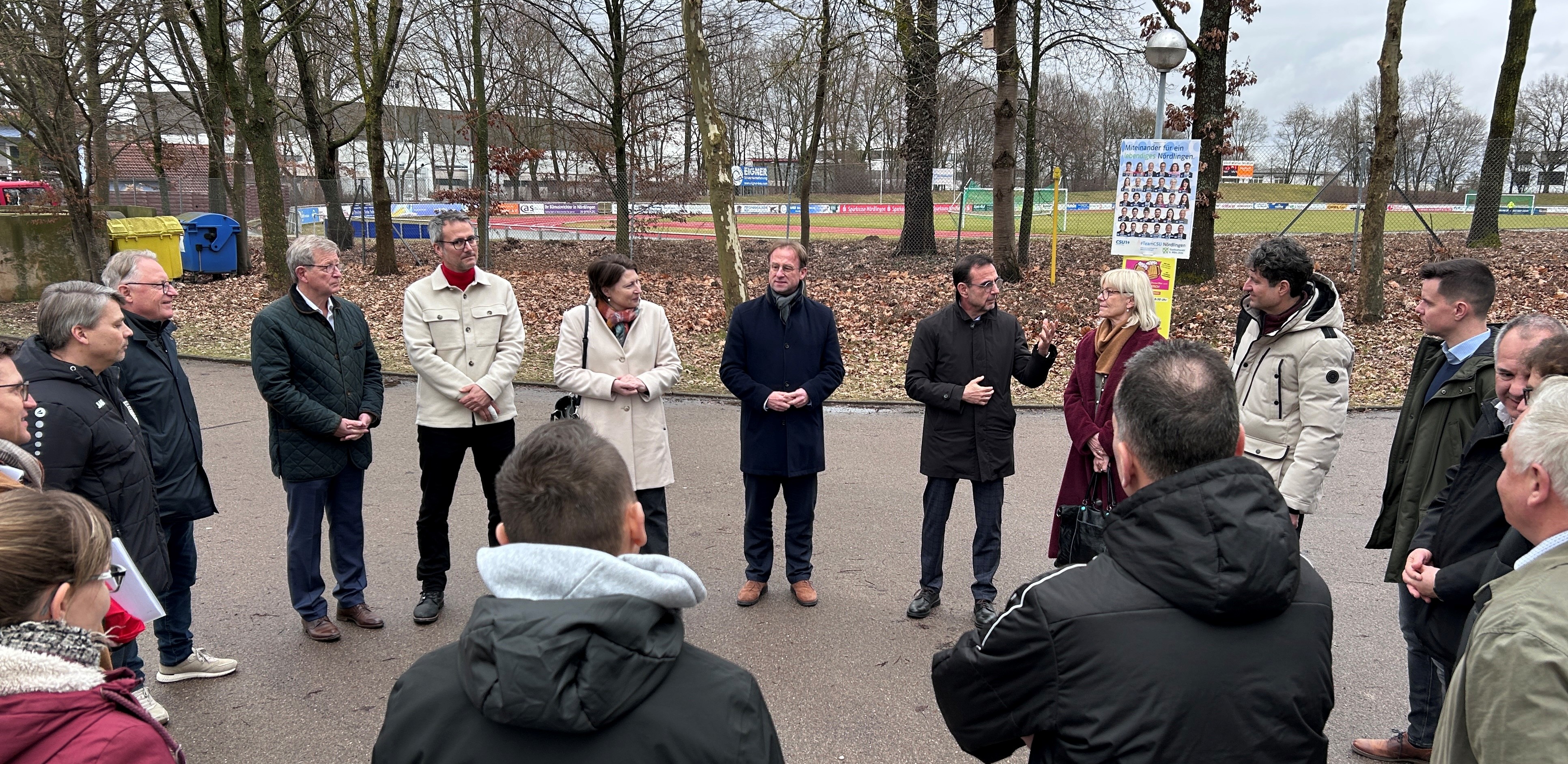 Unweit entfernt vom Kraterbad plant der TSV Nördlingen einen dringend notwendigen Kunstrasenplatz, um seiner Funktion als Nachwuchsleistungszentrum gerecht zu werden und seinen insgesamt 24 Mannschaften auch in der Übergangszeit passende Trainingsbedingungen zu bieten. Damit die veranschlagten Kosten in Höhe von rund 1,2 Millionen Euro gedeckt sind, braucht der Verein neben Eigenmitteln, der regulären Sportstättenförderung sowie der Unterstützung der Stadt und dem Landkreis weitere Fördermittel, wie Abteilungsleiter Andreas Langer erklärte. „Ich setze mich bereits bei den aktuellen Haushaltsberatungen im Landtag für eine Aufstockung ein“, versprach MdL Wolfgang Fackler und warb bei MdL Holetschek und der Schwabensprecherin MdL Carolina Trautner um Unterstützung. Schließlich handle es sich beim Kunstrasenplatz um ein Projekt, das vor Ort überparteilich unterstützt werde und das auch für OB David Wittner und die CSU-Fraktion im Nördlinger Stadtrat eine Herzensangelegenheit sei, von der auch die Idee für den Besuch ausgegangen war.